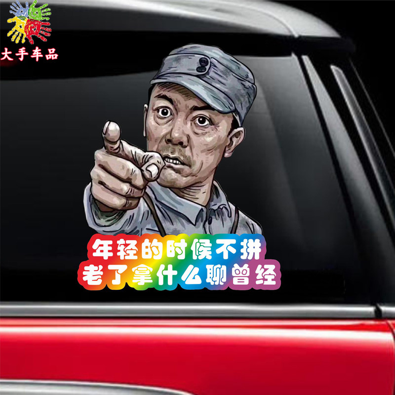 汽车贴纸李云龙个性油箱盖搞笑车身装饰创意文字车贴干活冲我来