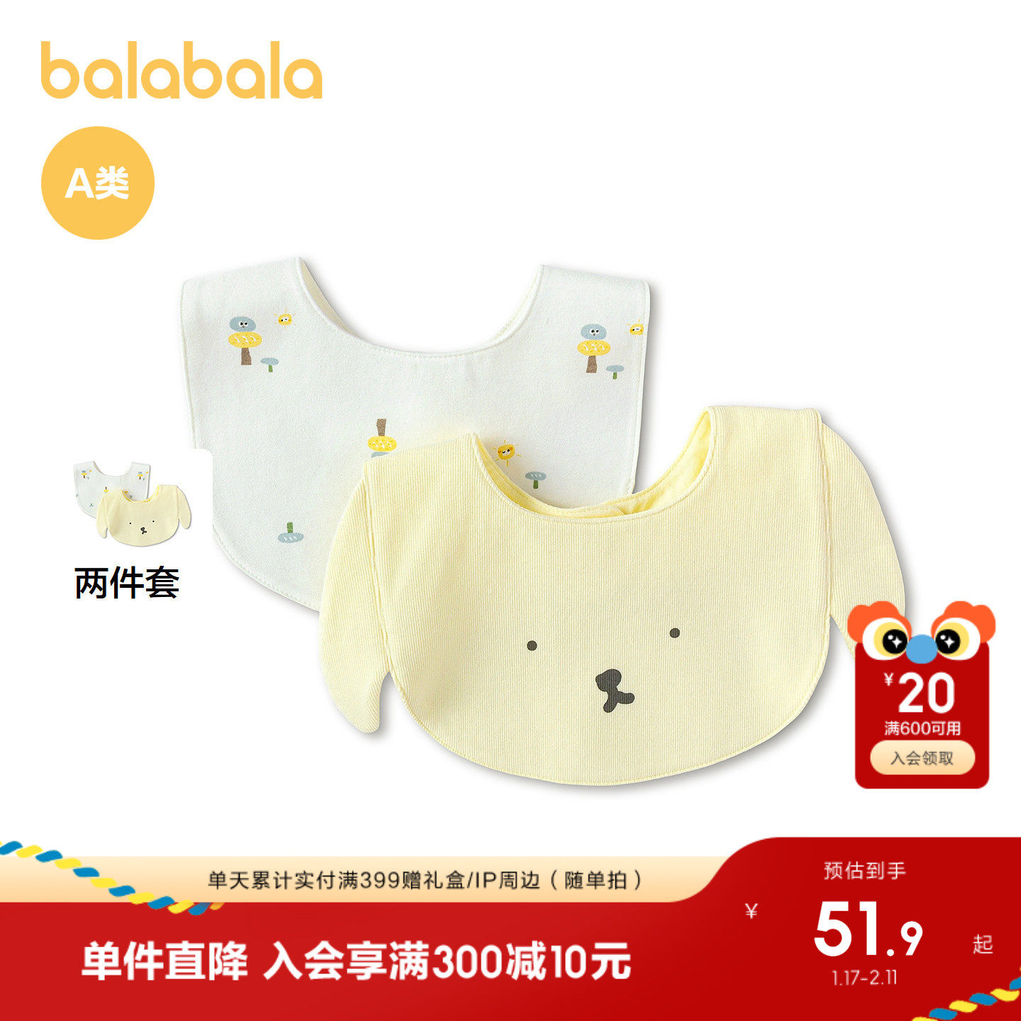 【商场同款】巴拉巴拉婴童用品宝宝吃饭围兜口水巾饭兜两件装婴儿