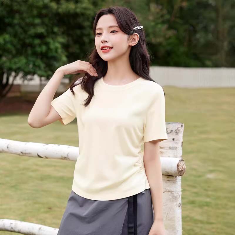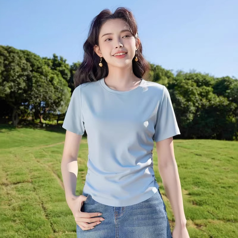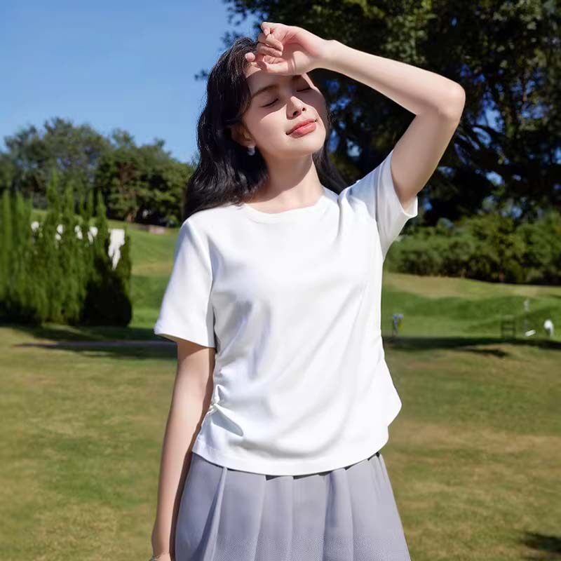 班尼路灰色短袖t恤女正肩2026新款夏收腰修身学生短款小个子上衣H