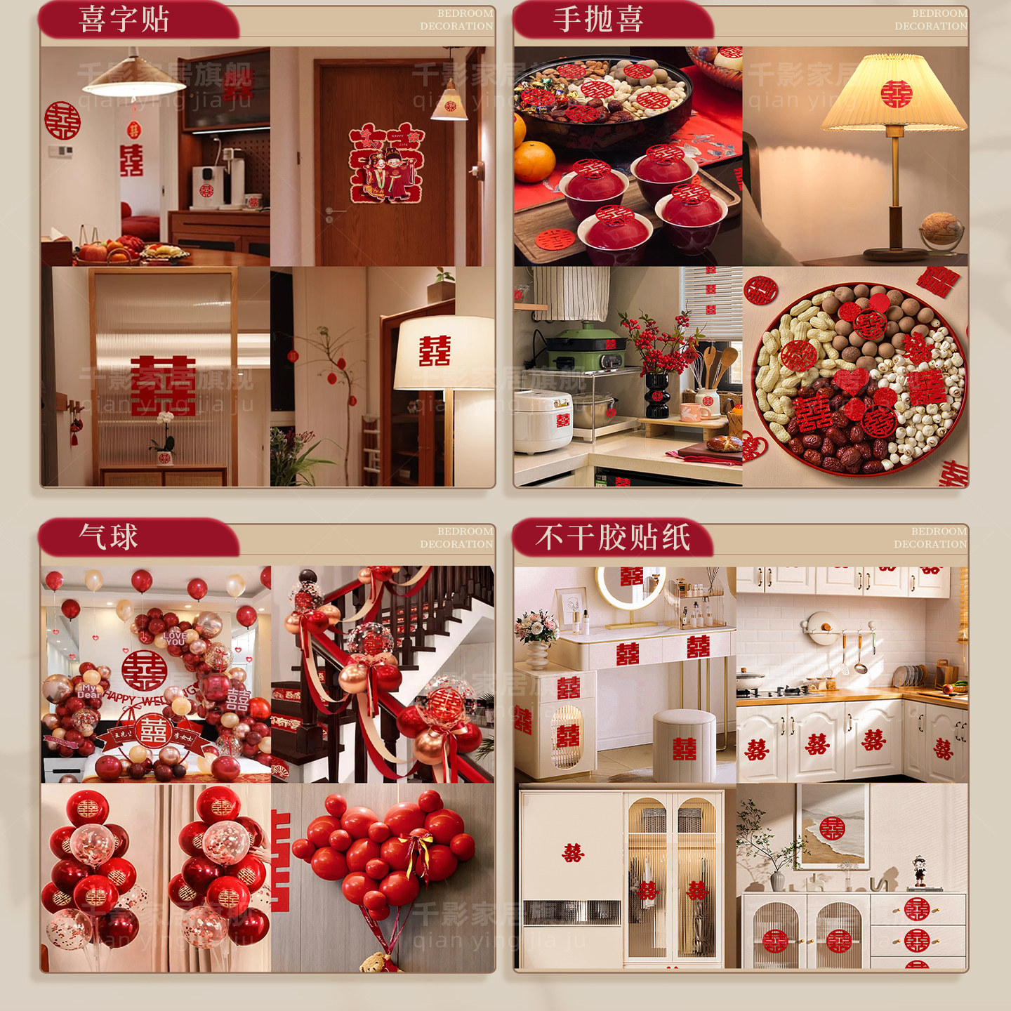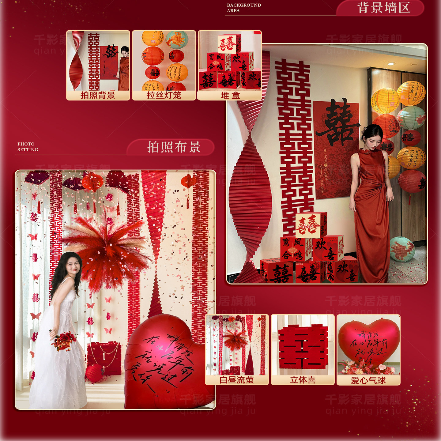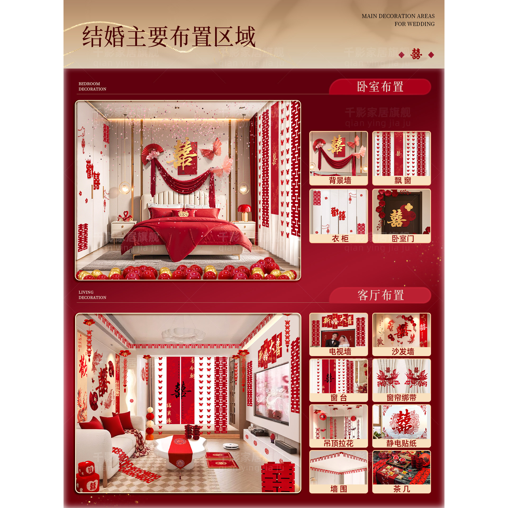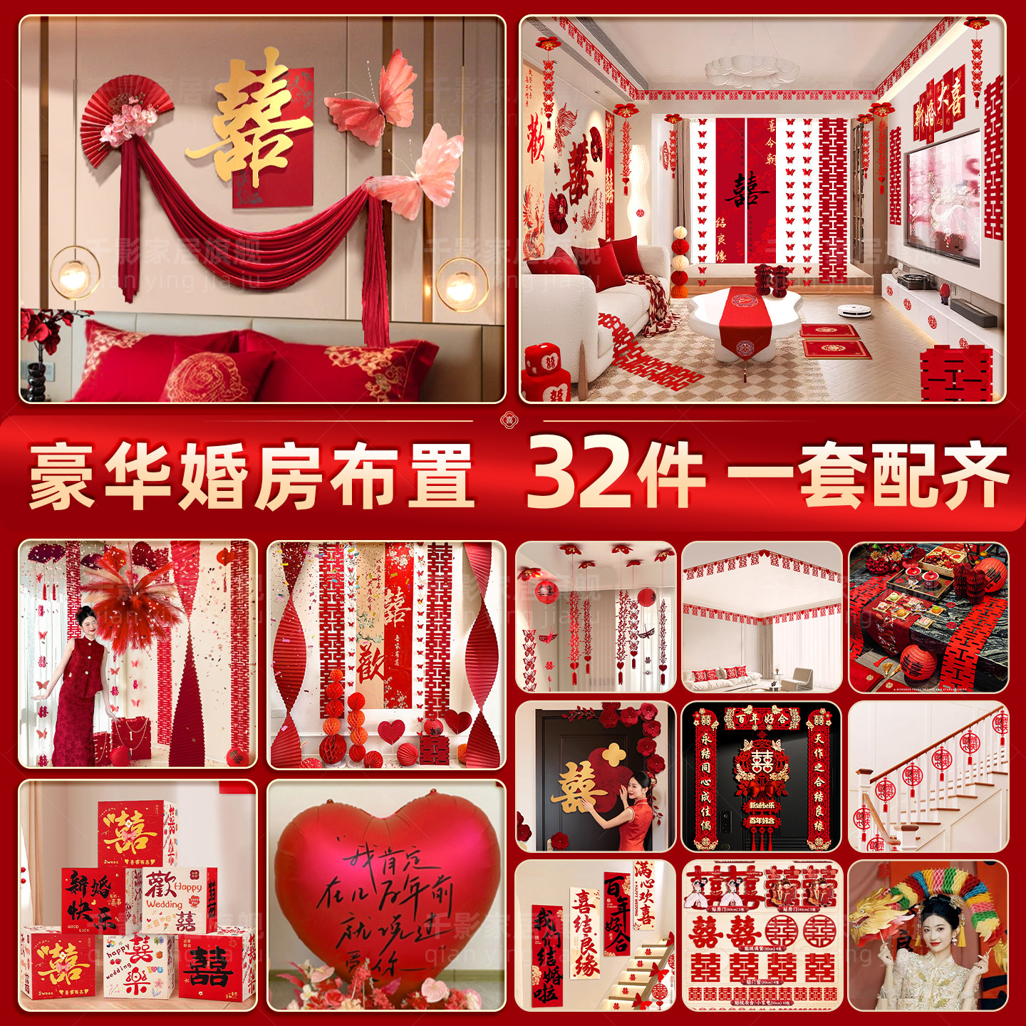 婚房布置套装结婚装饰婚礼女方男方卧室晨袍吊顶出嫁酒店新房客厅