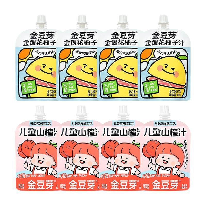 金豆芽金银花柚子汁4袋+儿童山楂汁4袋