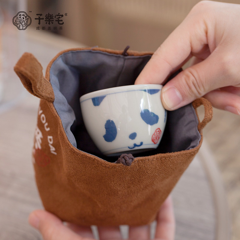 子乐宅 熊猫快客杯品茗杯+茉莉花茶户外旅行出差茶器套装出游便携