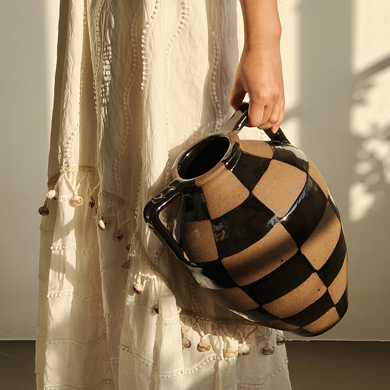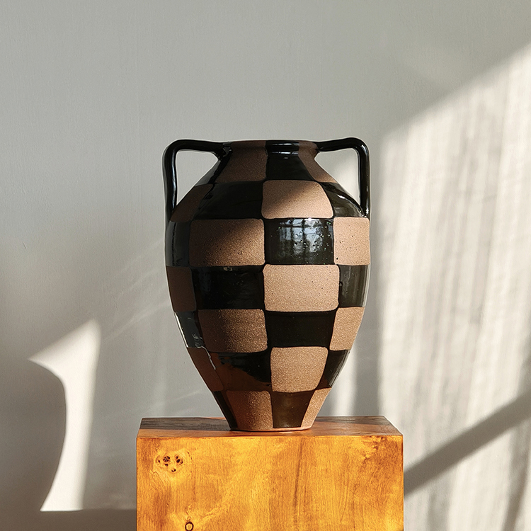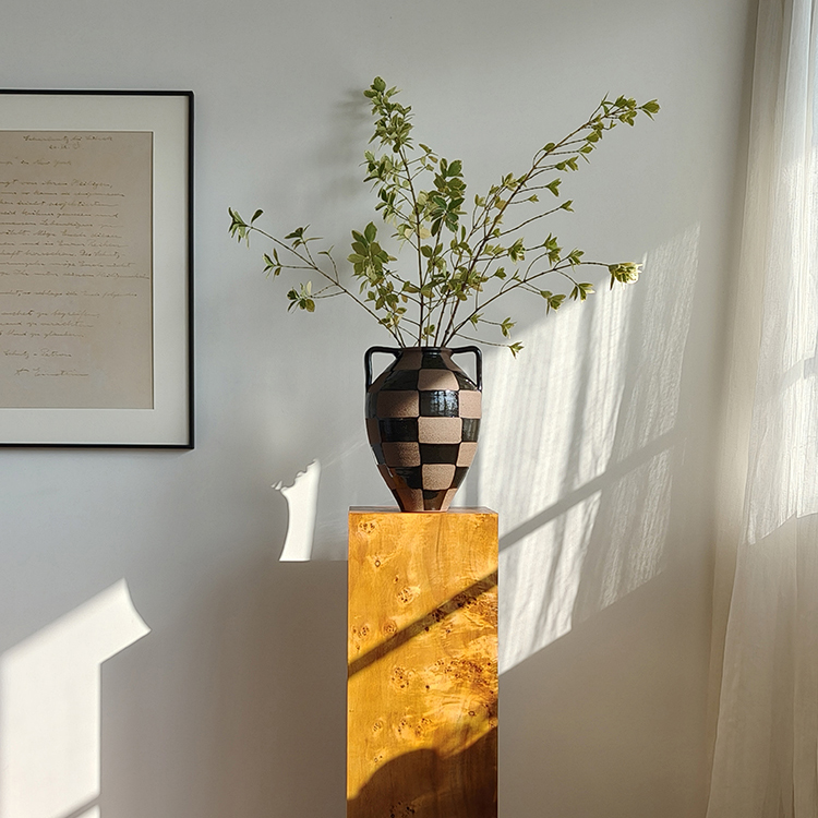 侘寂风 设计师中古风格纹陶瓷花瓶 民宿样板间客餐厅饰品高级摆件