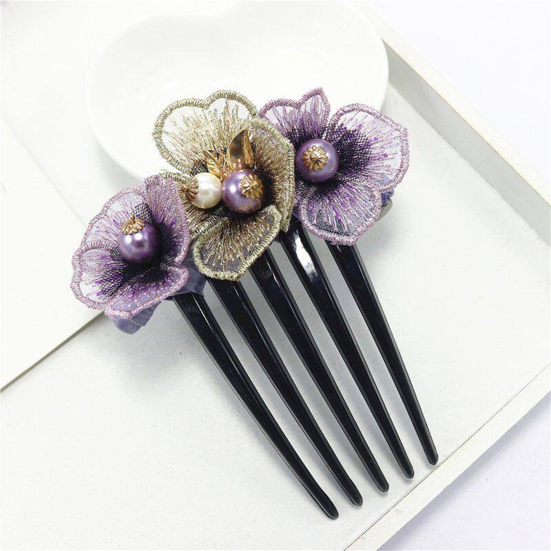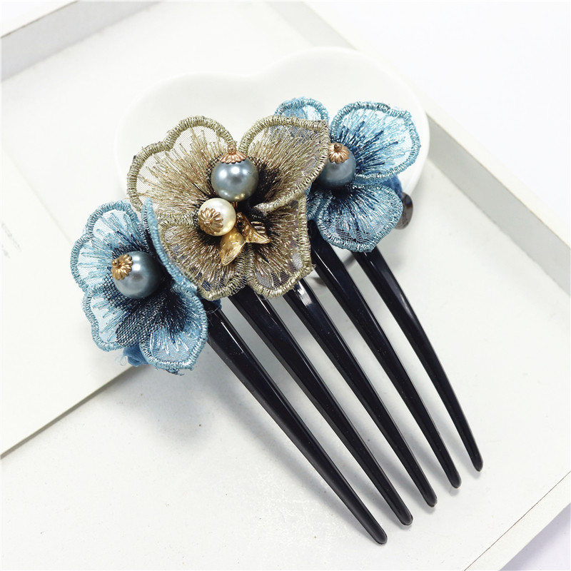 CHRIST/克丽斯汀仿珍珠刺绣甜美夹子韩版头饰饰品插梳发梳五齿梳