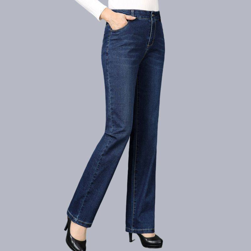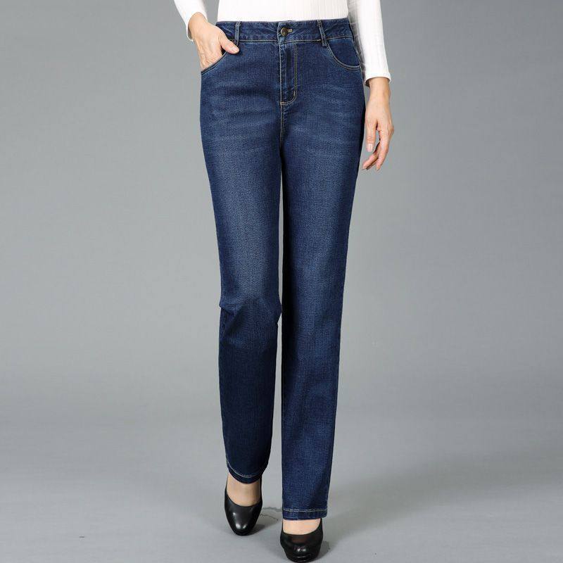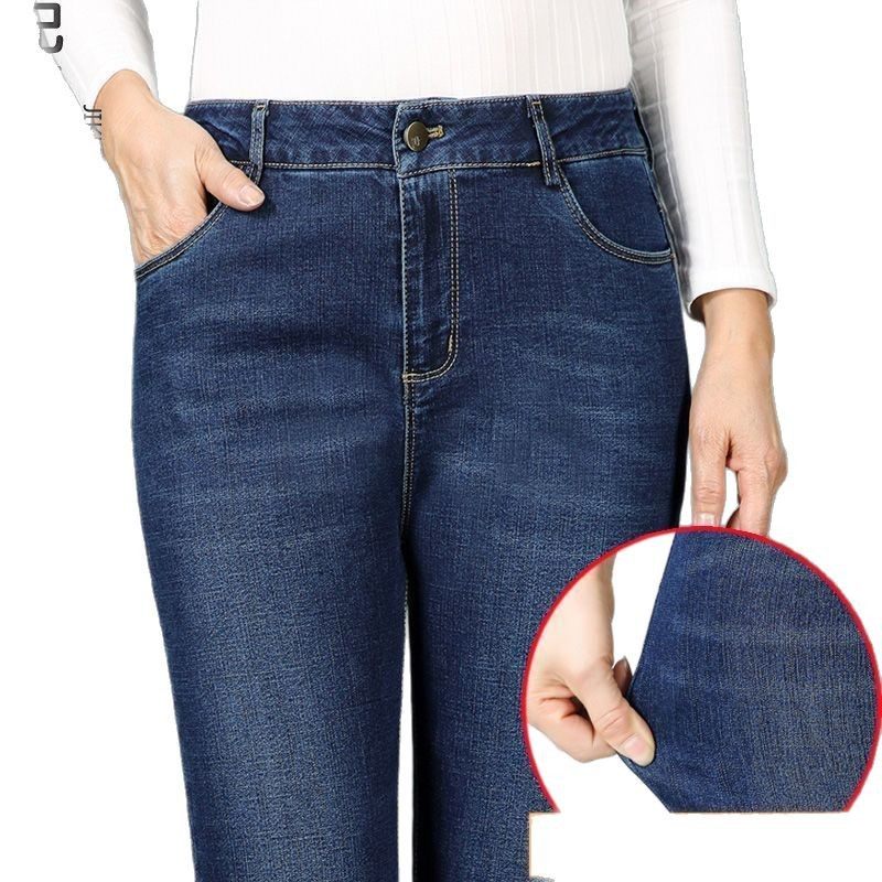 高端女士2025年妈妈牛仔裤女高腰弹力直筒宽松长裤秋冬款中年女裤