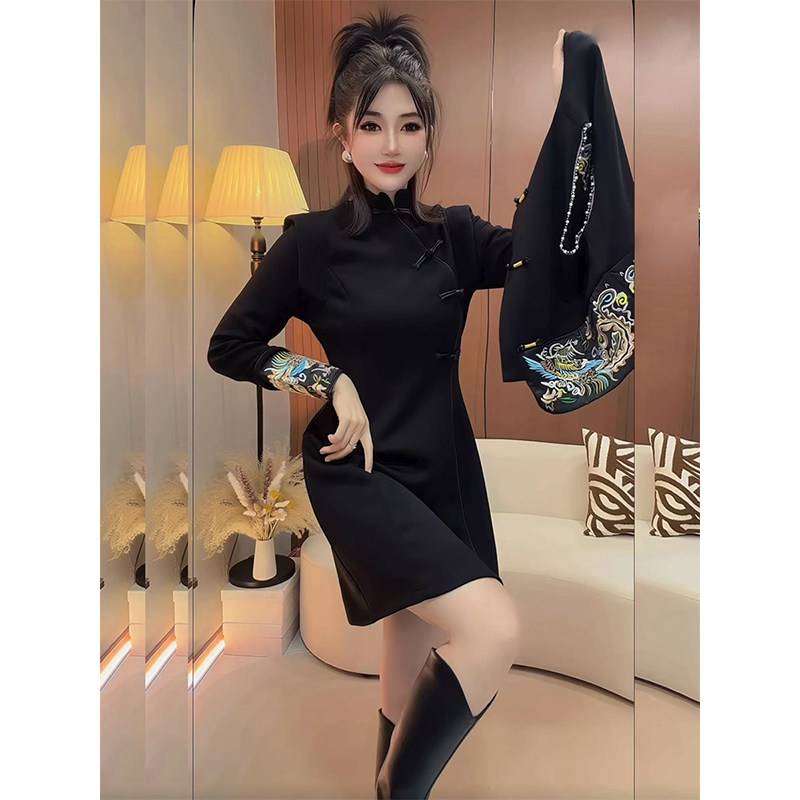 新中式国风盘扣刺绣马甲+旗袍连衣裙2025秋冬新款重工高级感套装
