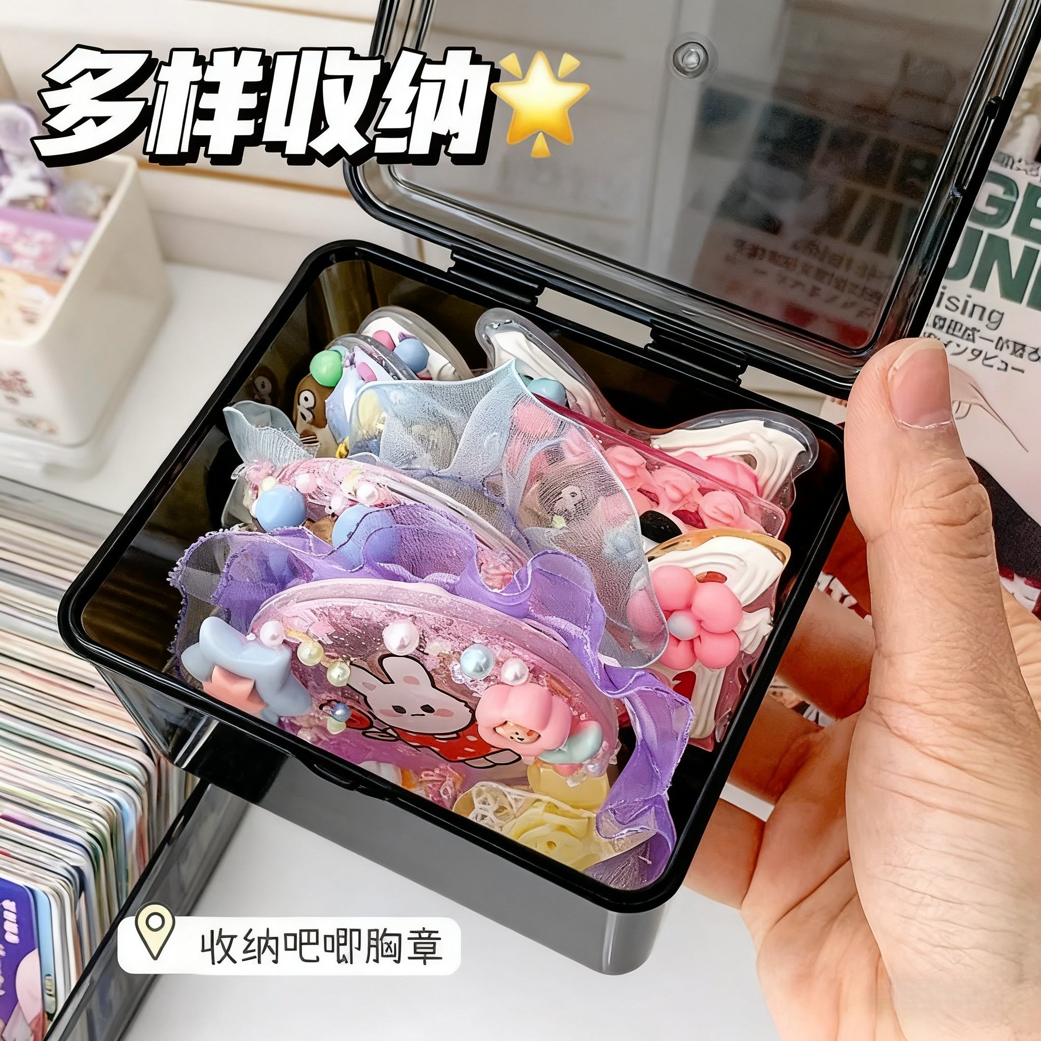 卡片收纳盒翻盖ins透明盒子收纳盒收纳整理防尘多功能桌面整理盒