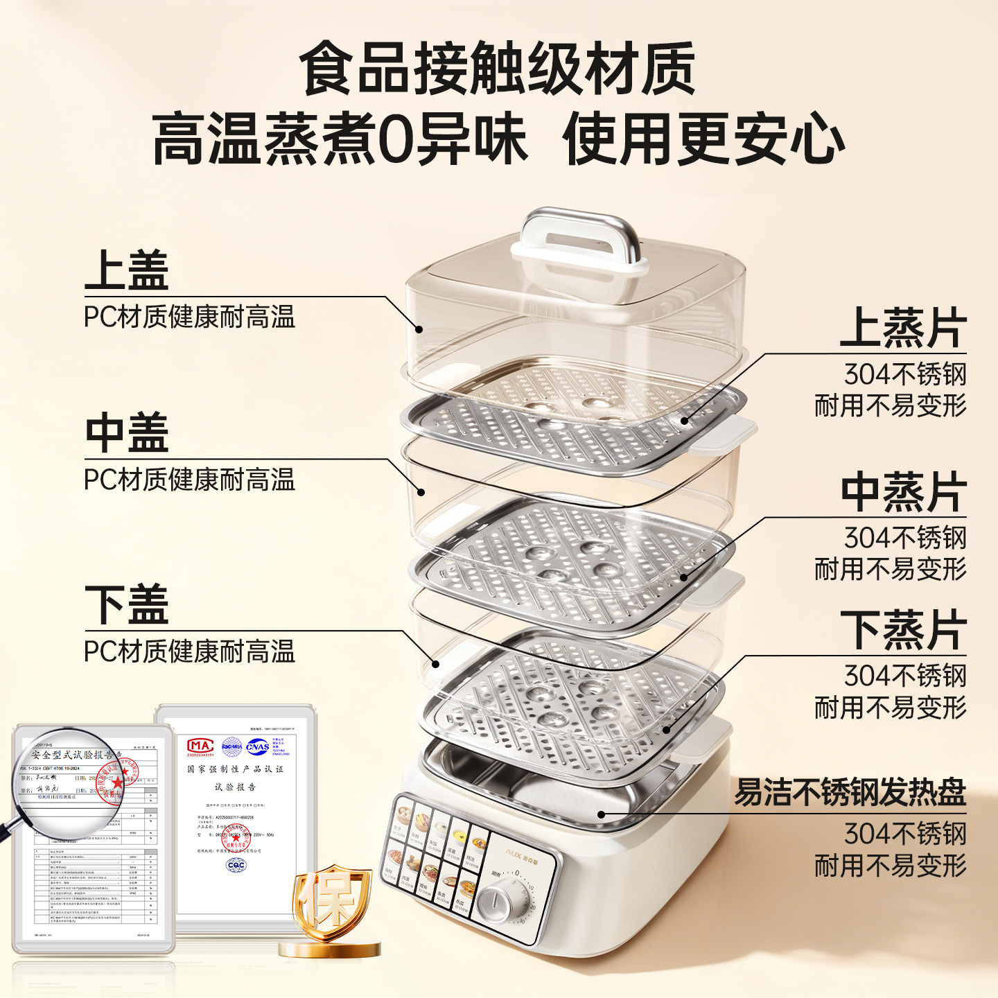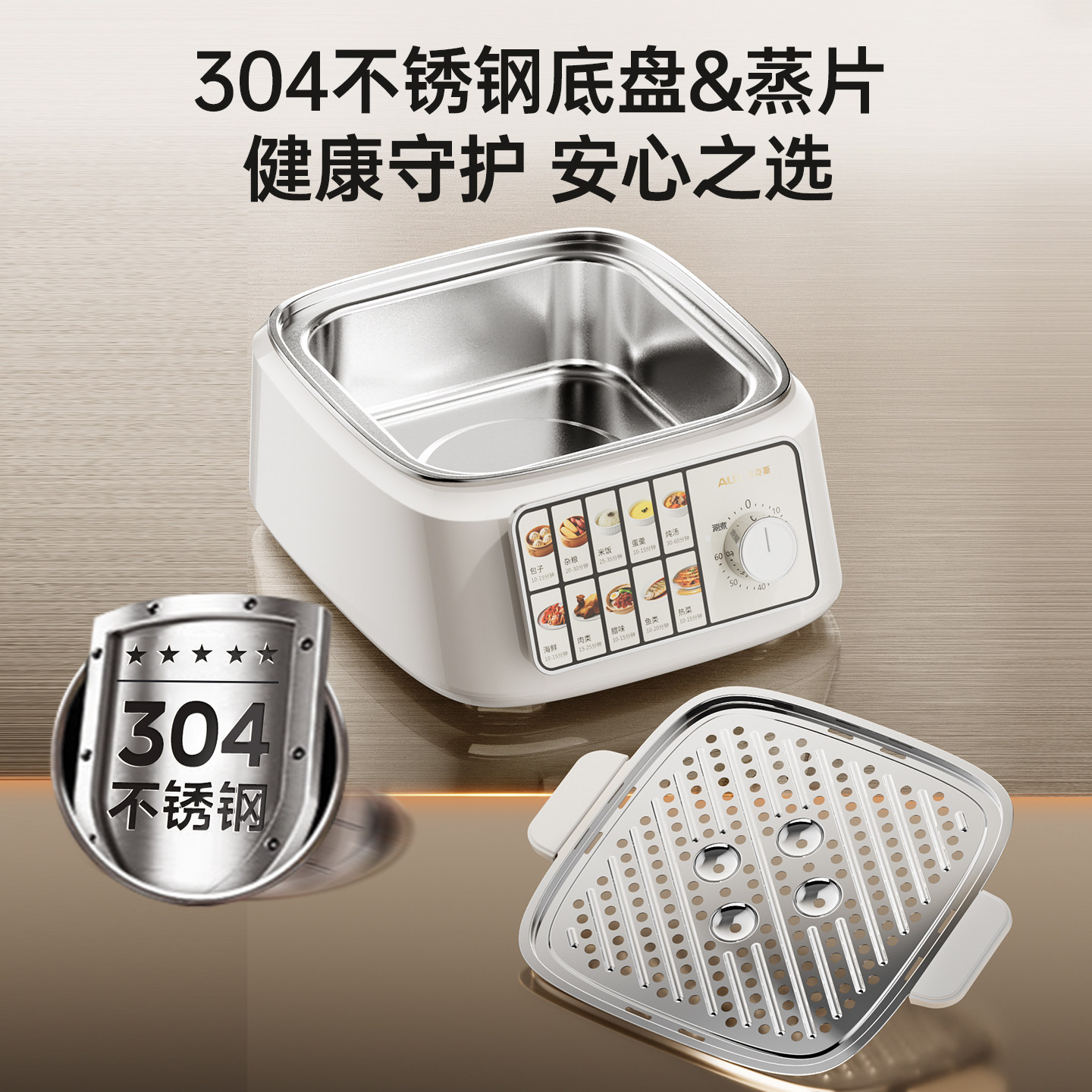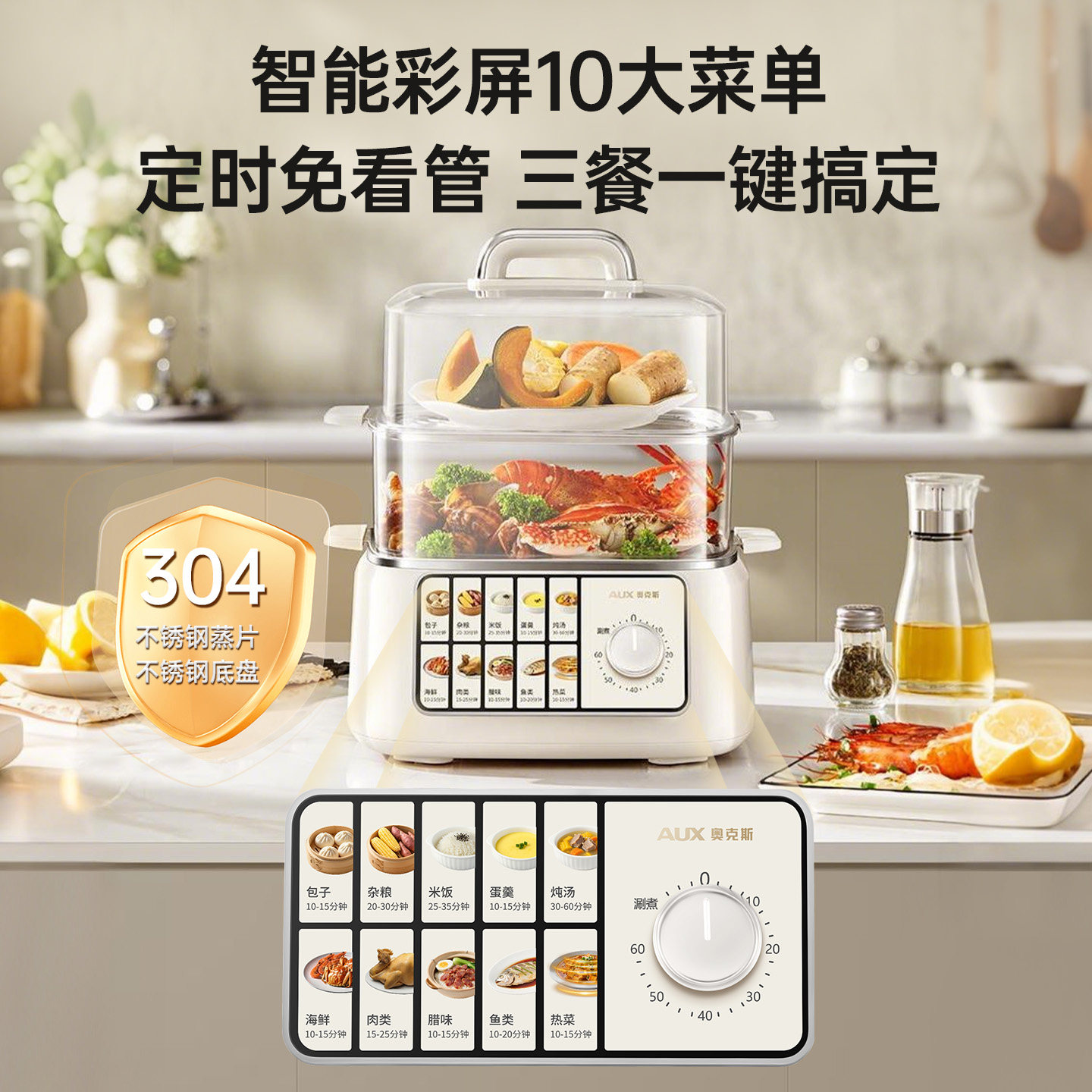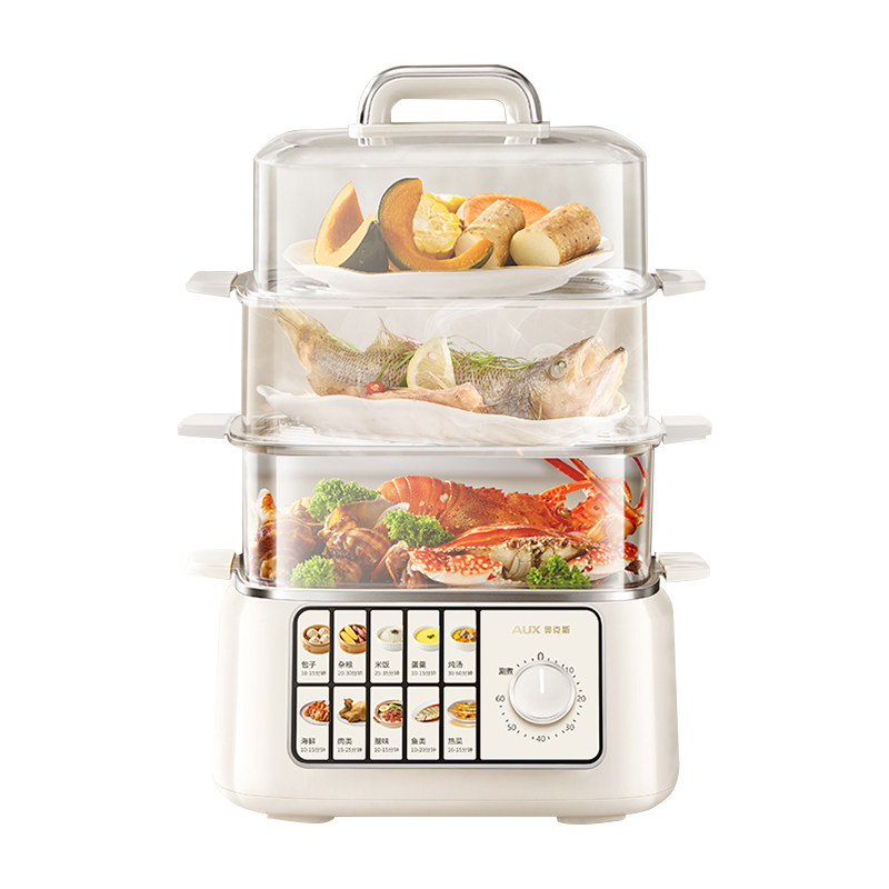奥克斯电蒸锅三层多功能定时家用不锈钢蒸汽锅蒸菜包子一体早餐机