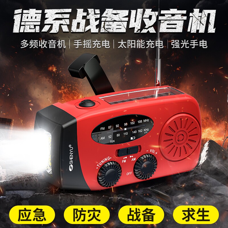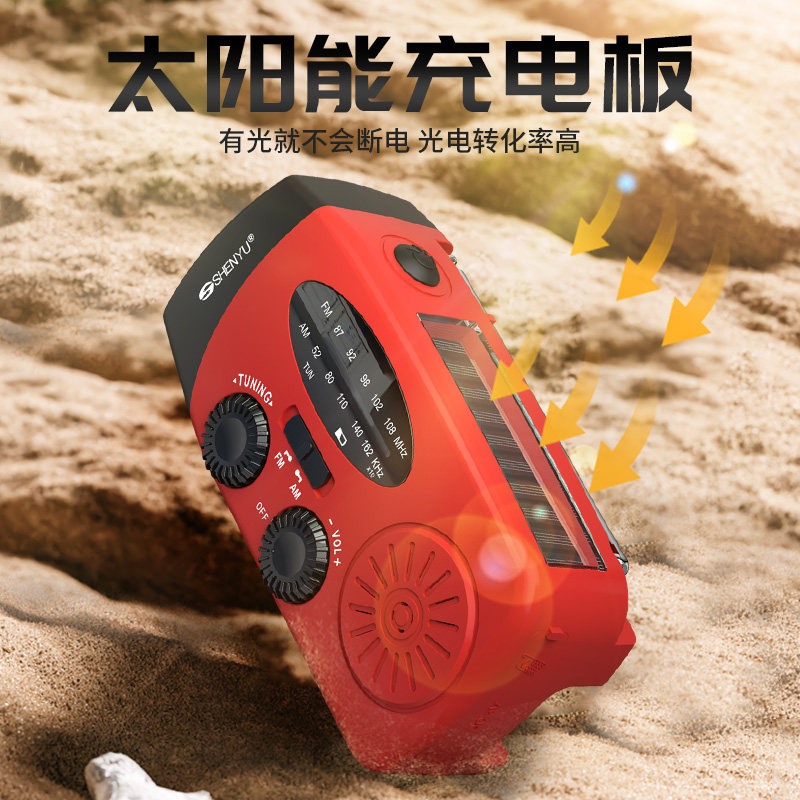 多功能手摇发电收音机手电筒太阳能充电应急充电宝战备生存装备军