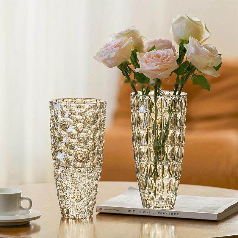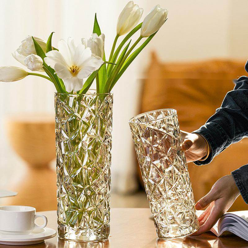 轻奢高级感透明玻璃花瓶客厅摆件插花水培桌面饰品富贵竹专用花器