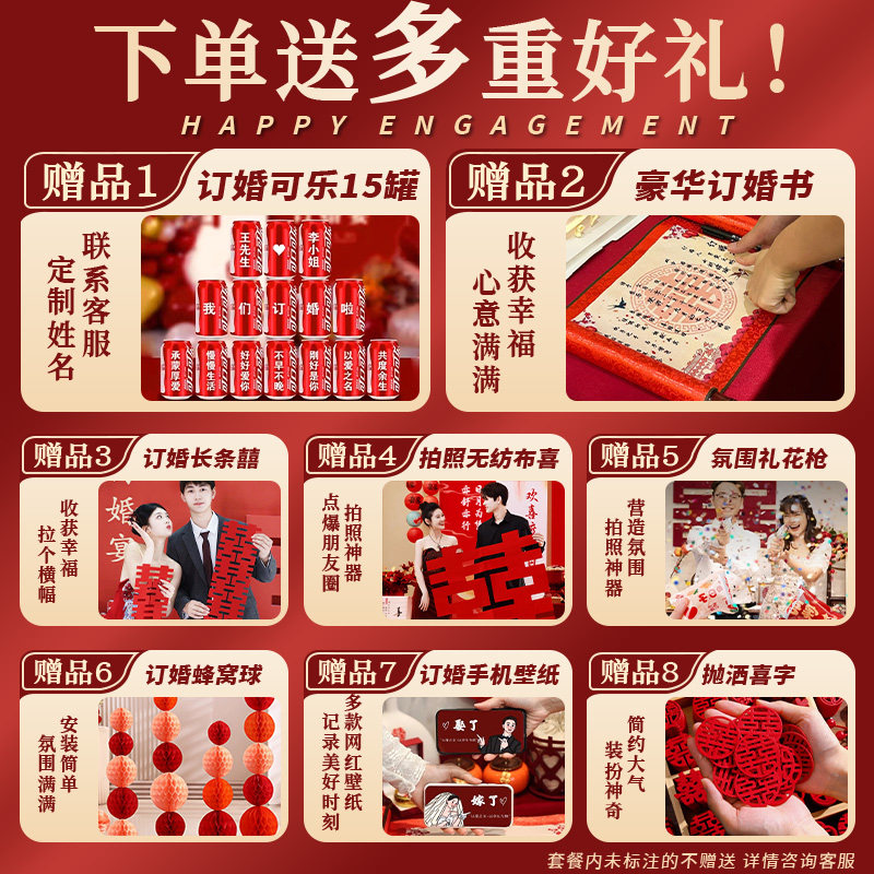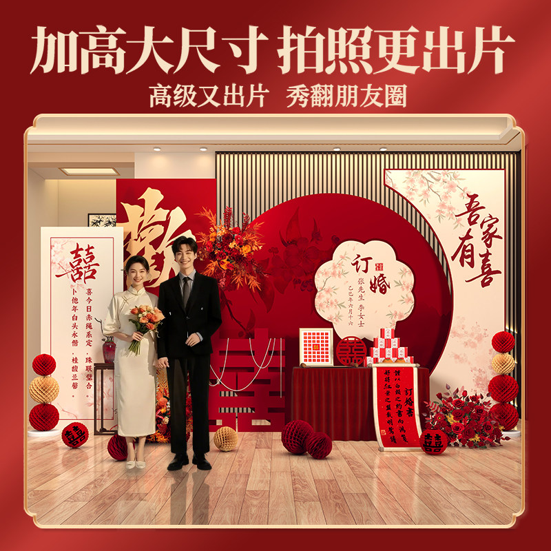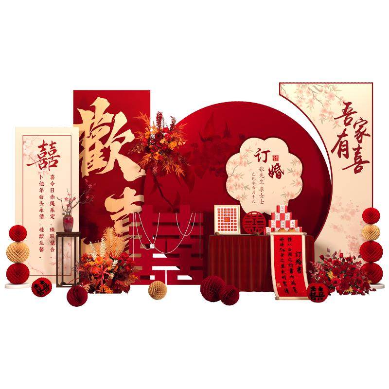 2026新中式订婚宴布置装饰定亲场景摆件台高级用品全套背景墙kt板