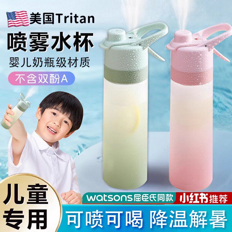 2026新款美国儿童喷雾水杯降温解渴大容量杯子耐高温学生运动水壶