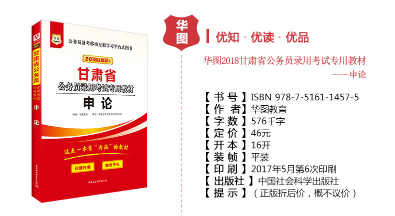 正版公务员考试用书2018省考 华图甘肃公务员考试用书2018甘肃省公务员考试用书申论教材 公务员考试用书2018选调生村官