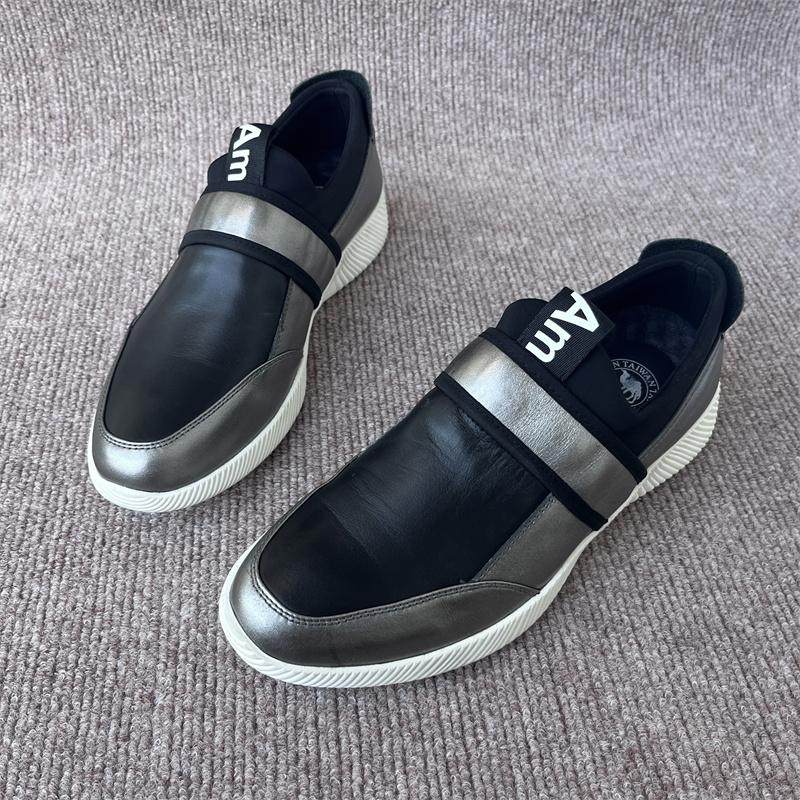 38-42码春秋真皮流行男鞋头层牛皮运动时尚厚底魔术贴男休闲皮鞋