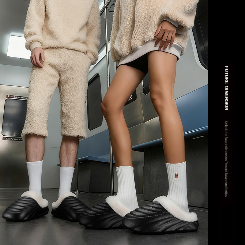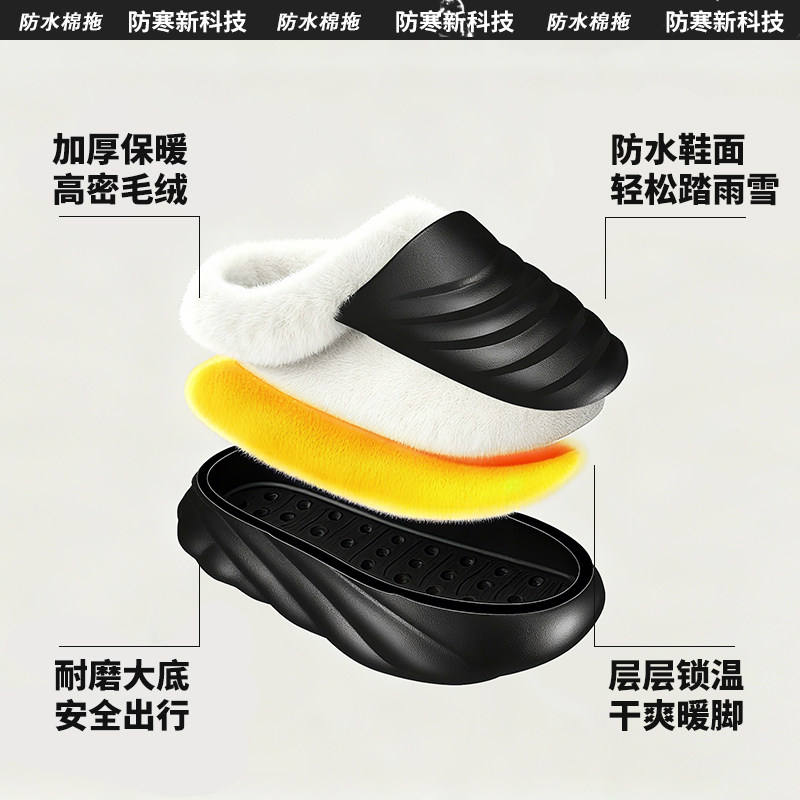 居家保暖棉拖鞋女士加绒厚底情侣棉鞋防滑防水雪地可外穿棉拖男款