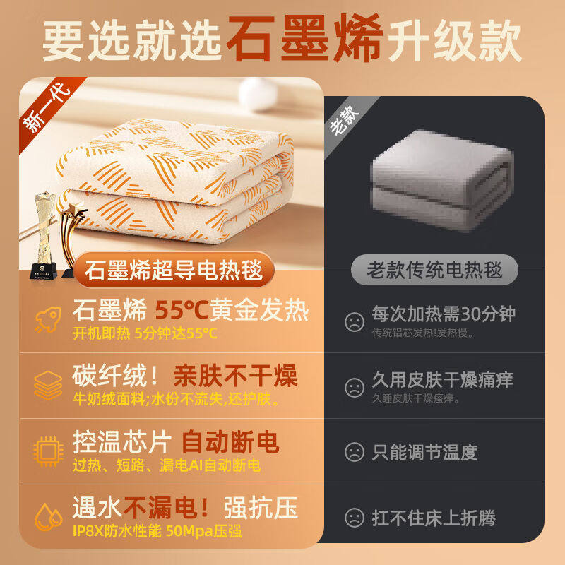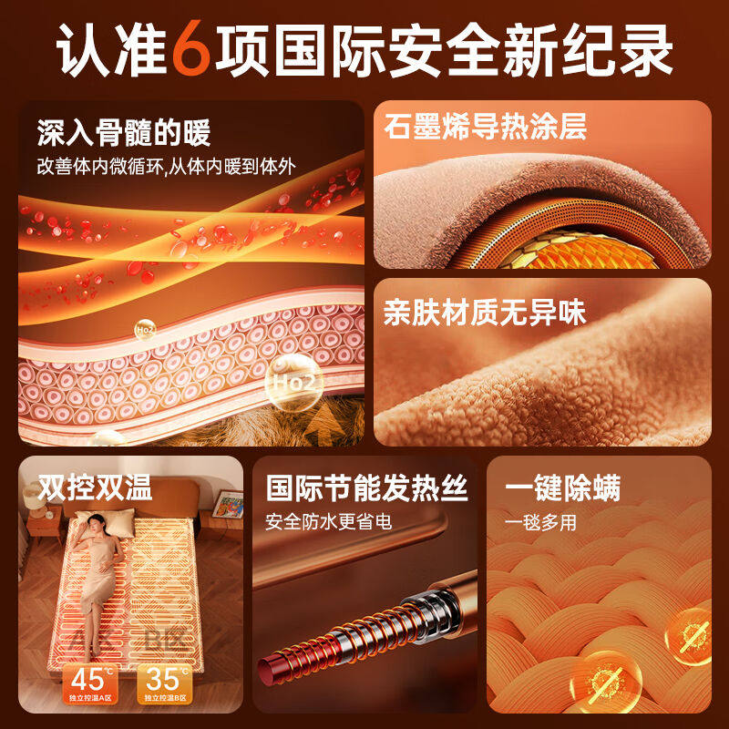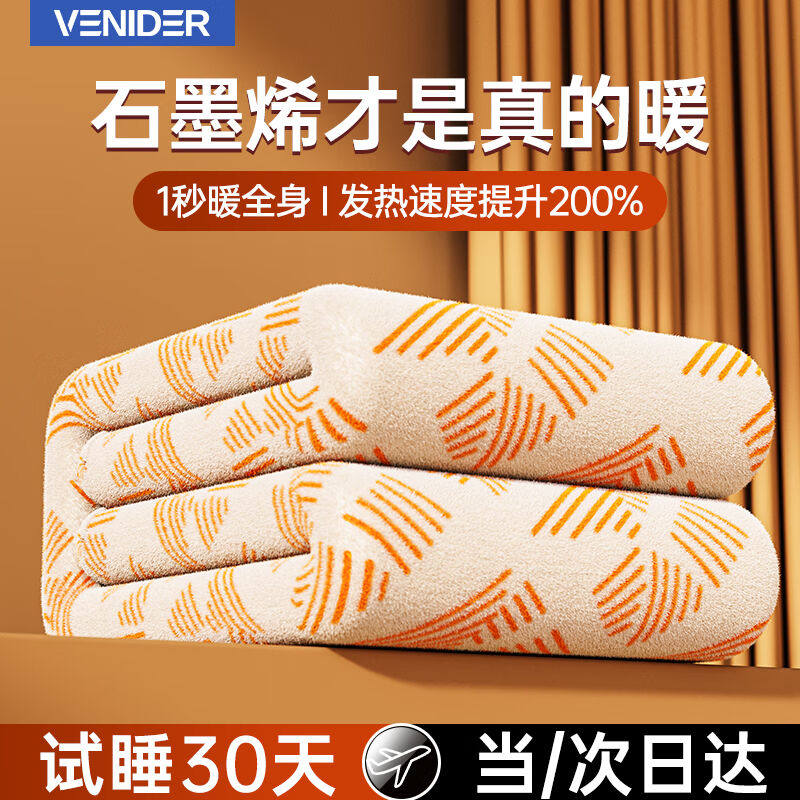 VENIDER电热毯单人电褥子双人1.8米x2米安全自动断电双控除螨石墨
