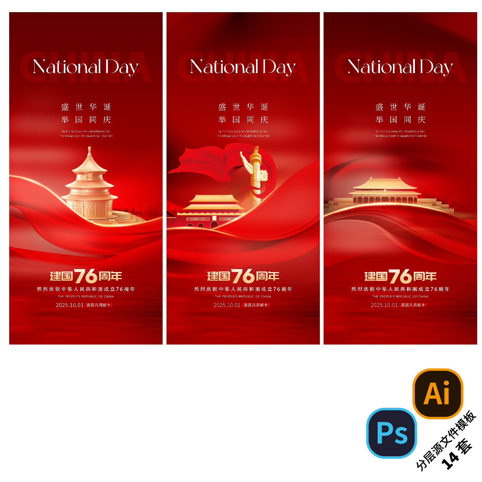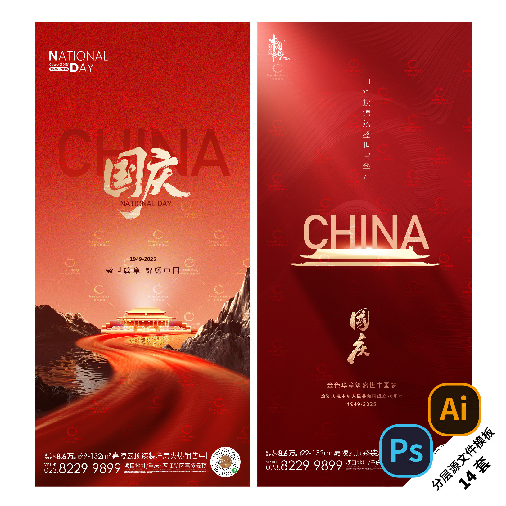 B514-国庆节日海报2025十月一企业宣传地产活动PSD/AI素材模版