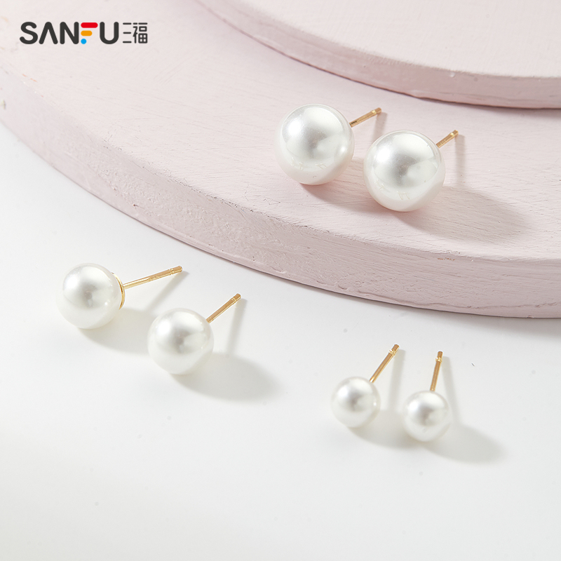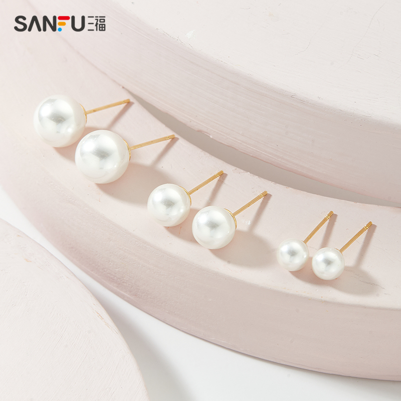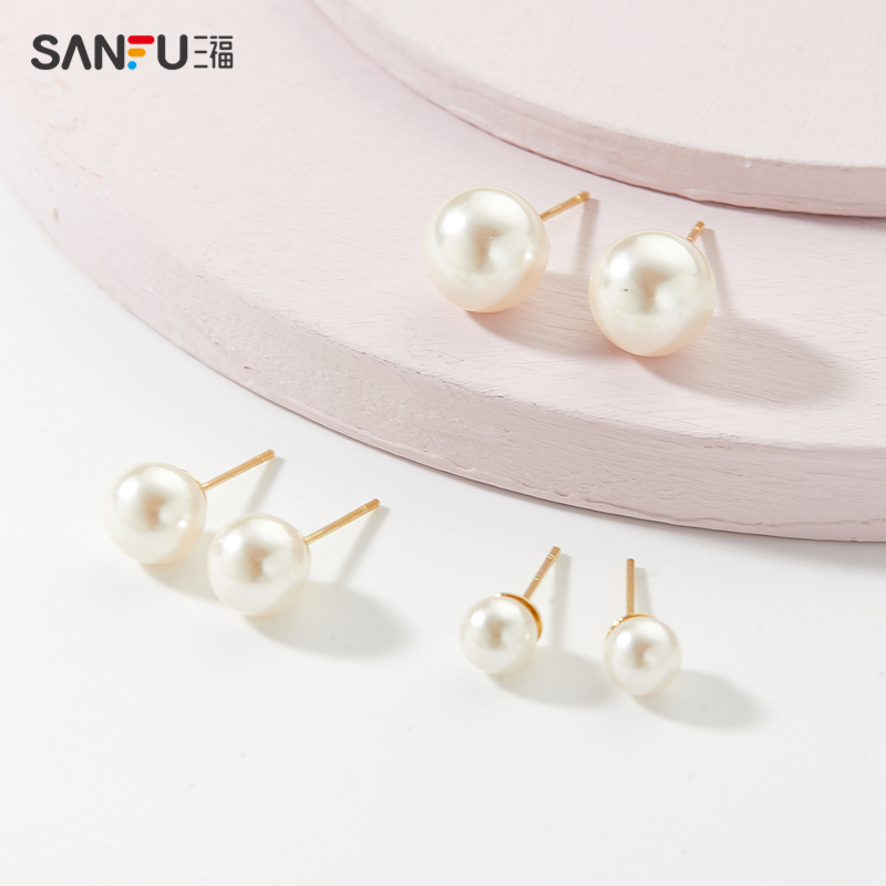 三福简约珠珠套装耳环一组三对 气质时尚装饰耳饰首饰835349