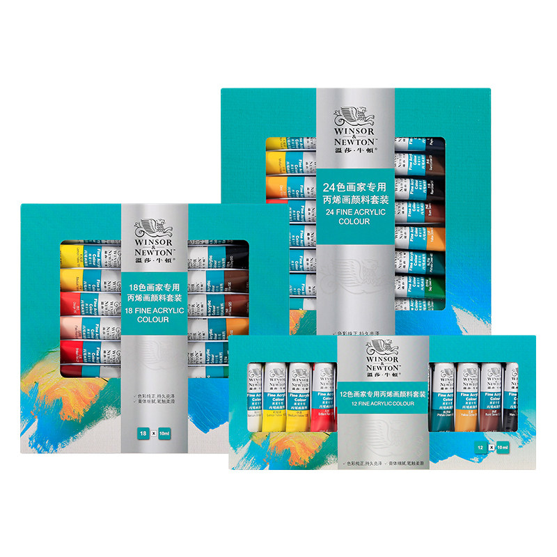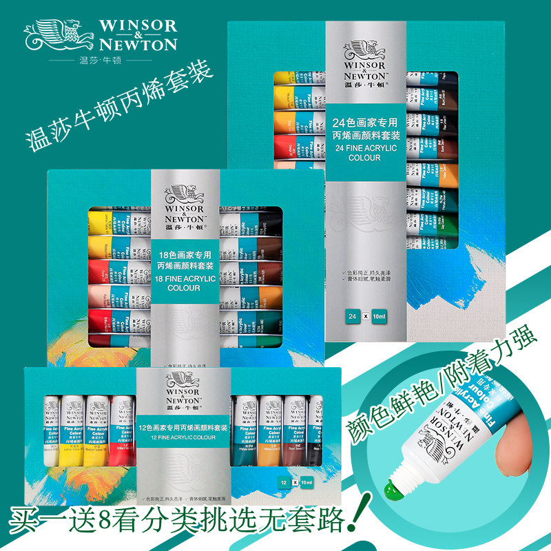 温莎牛顿画家用24色丙烯套装12色18色手绘墙绘纺织绘画颜料防水DIY丙烯36色绘画耐水颜料套装