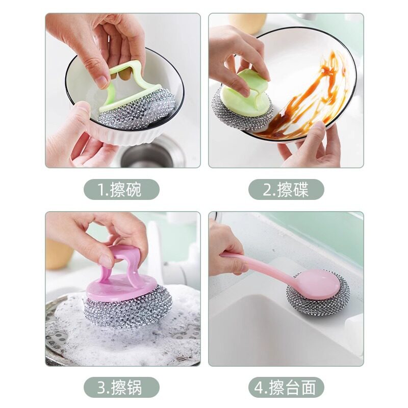 不伤锅清洁球手柄钢丝球带不脏手刷锅神器家用去油污刷子带把锅刷