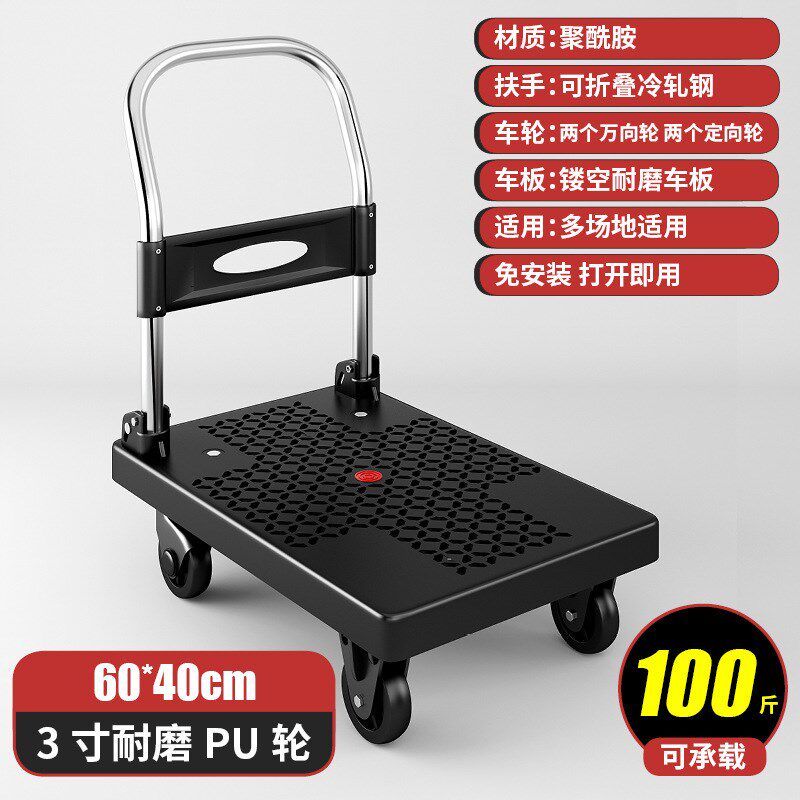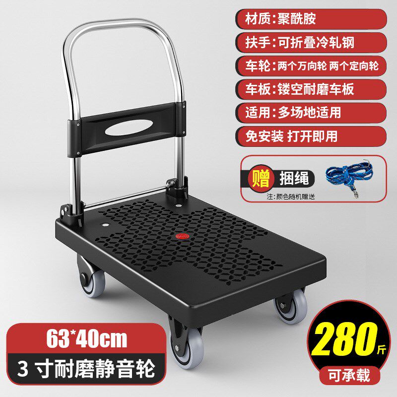 折叠手推车拉货小拉车仓库房拖车便携家用工具小推车搬运货平板车