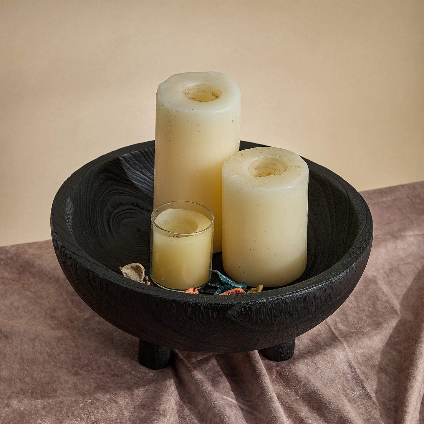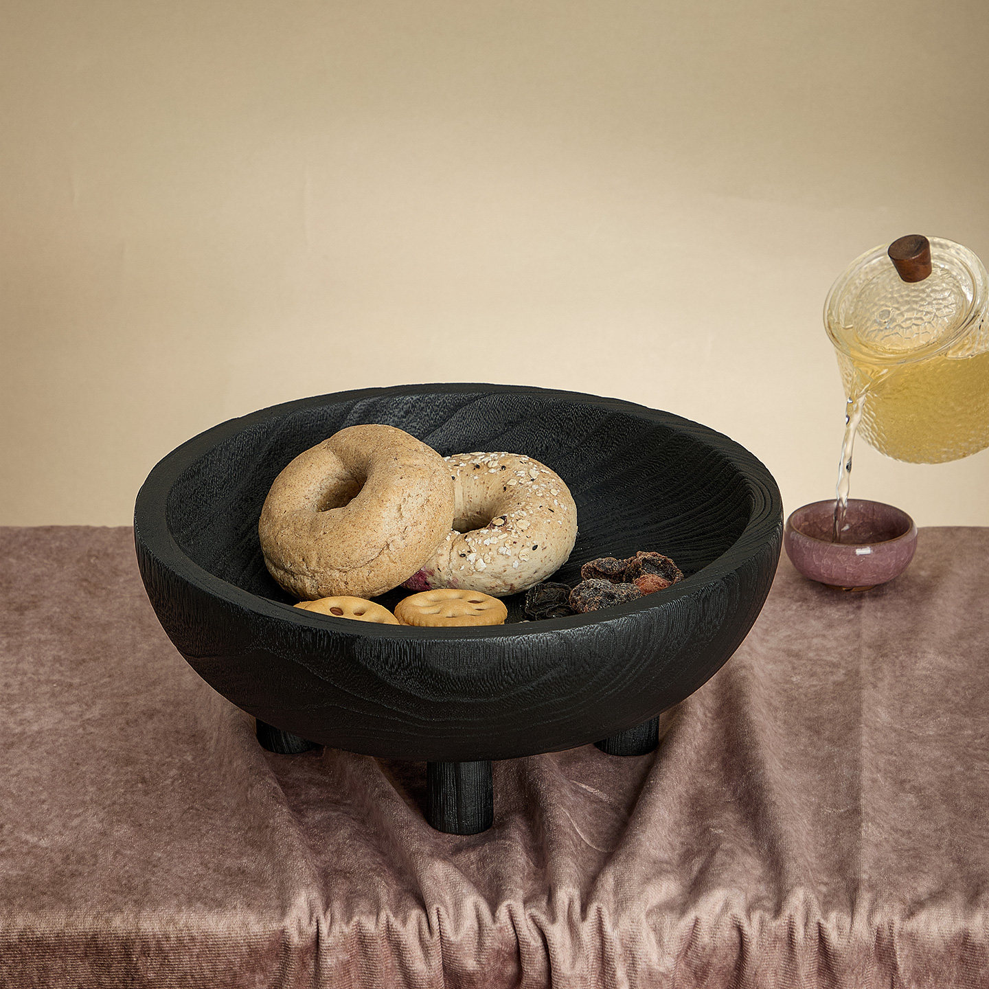 木质果盘法式复古黑色四足鼎水果收纳盘家用客厅茶几实木果篓摆件
