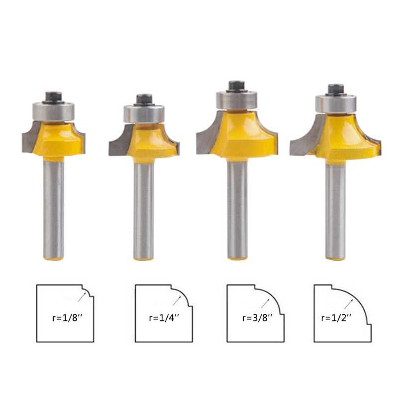 4 Pcs Shank Fillet Knife Wood Router Bit Chamfering R-Angle