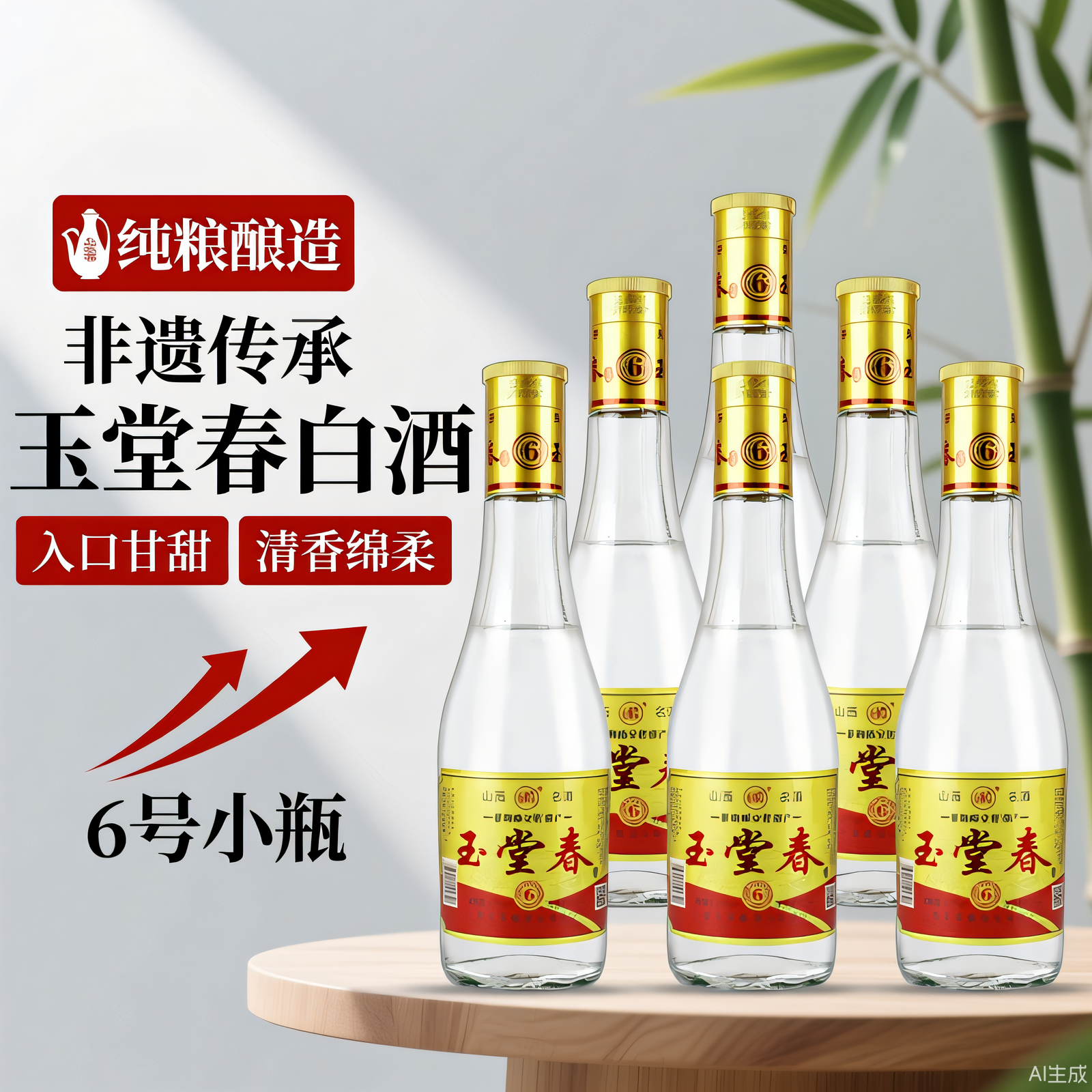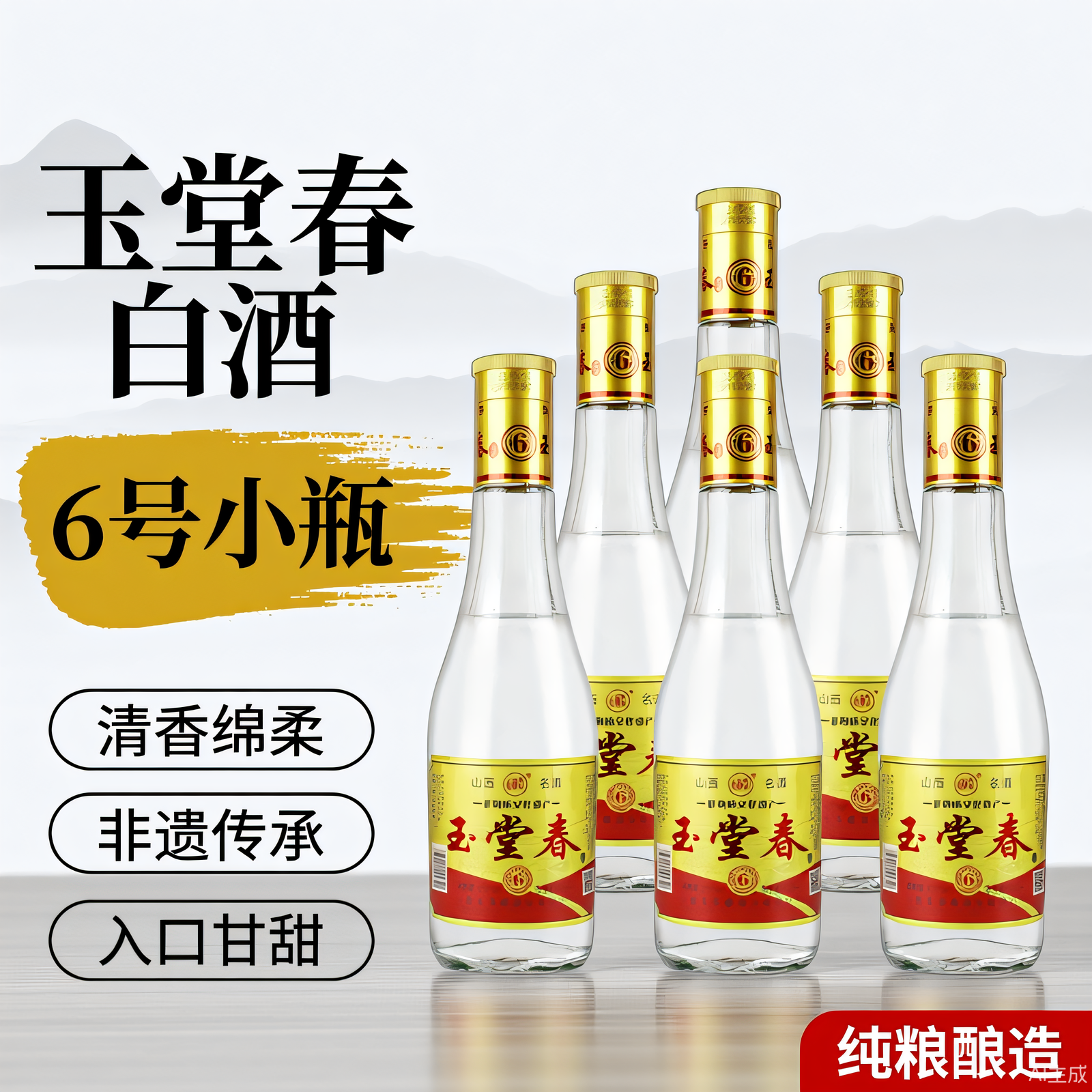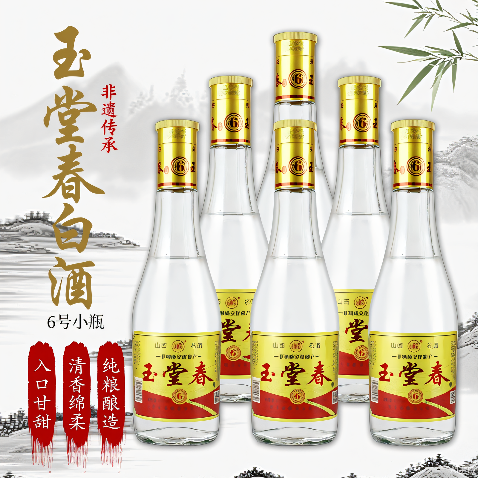 山西名酒洪洞玉堂春6号至尊225ml小瓶装42度清香型纯粮食高粱白酒