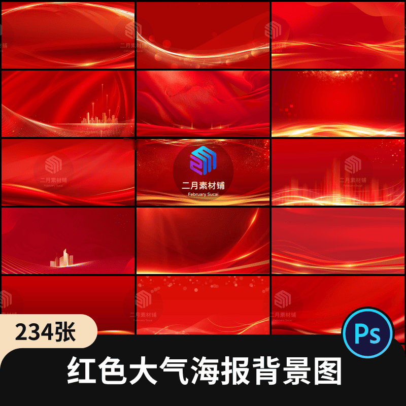 红色大气商务科技企业年会晚会舞台背景banner海报展板ps设计素材