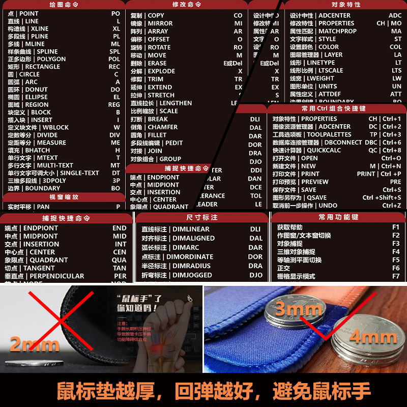 CAD快捷键鼠标垫CAXA绘图中望SW机械UG设计BIM工程可爱男女生桌垫