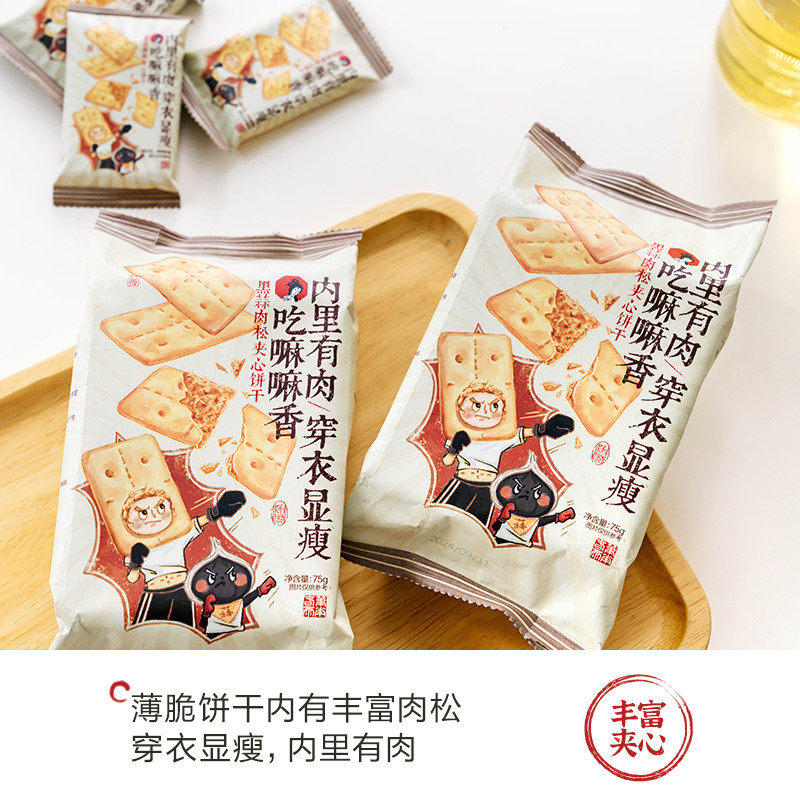 茶颜悦色黑蒜肉松夹心芝士饼干夹心韧性饼干办公室零食75g/袋