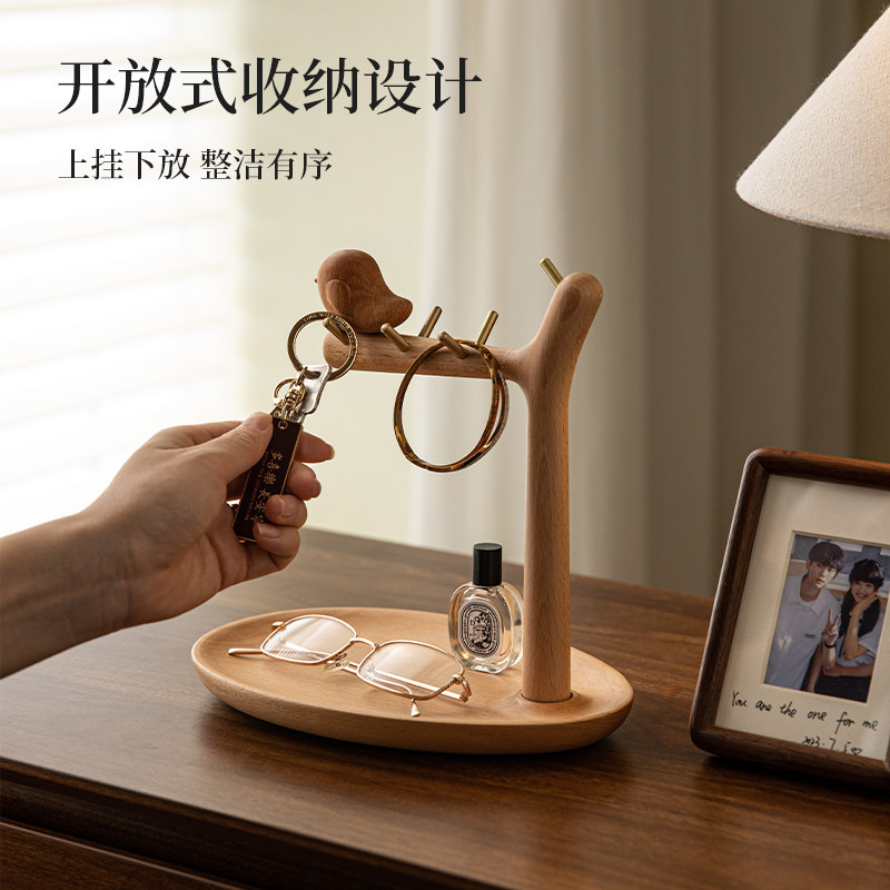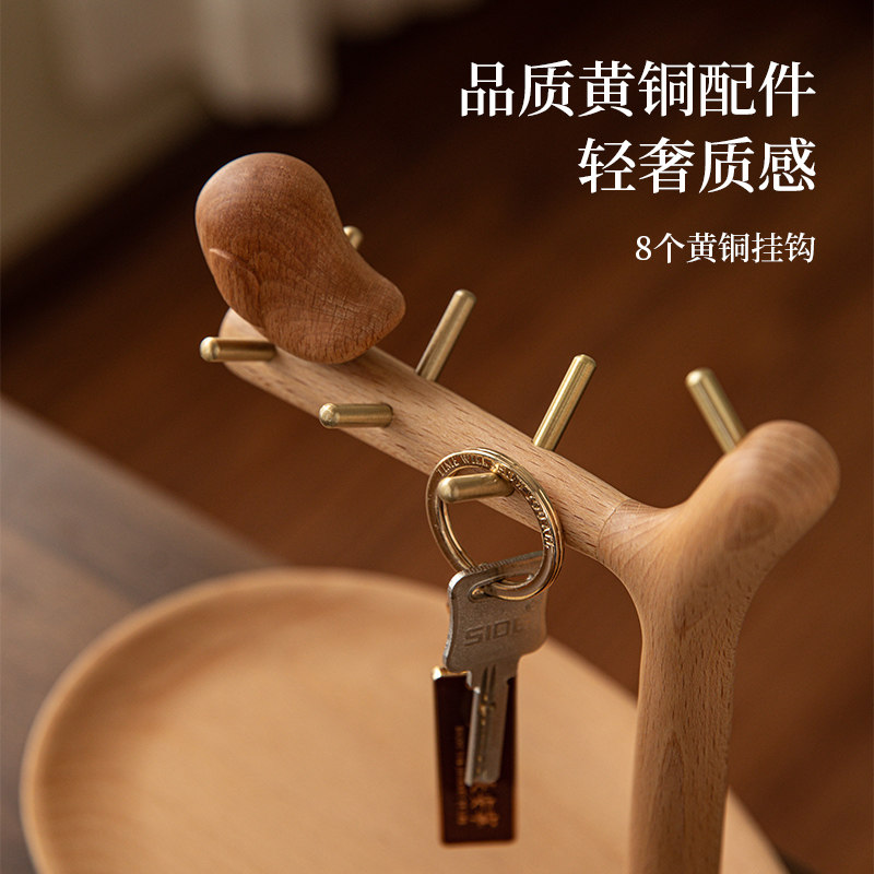 实木玄关置物架挂钥匙摆件桌面化妆品整理收纳盒创意乔迁生日礼物