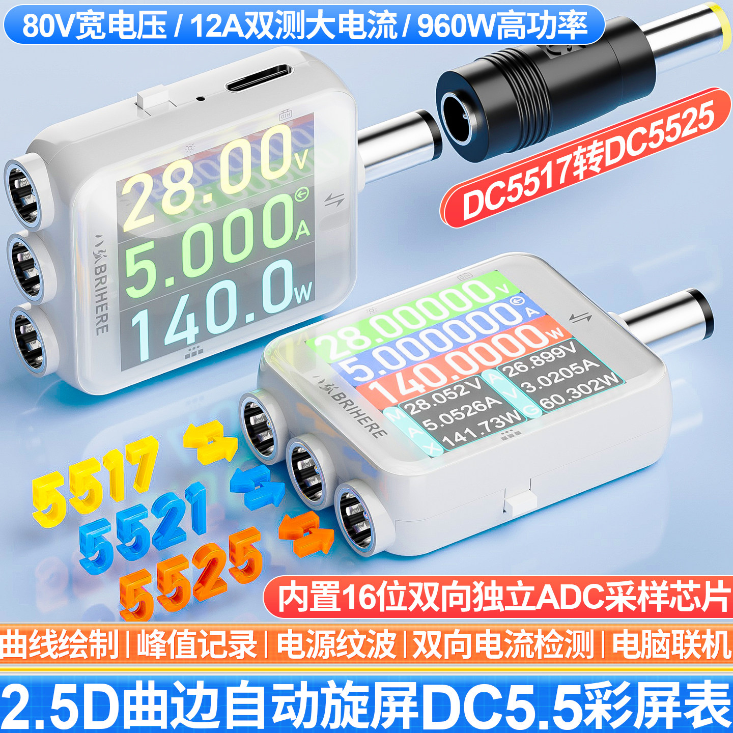炬为DC5.5直流数显电压表电流表检测试仪多功能数字功率计双向12A