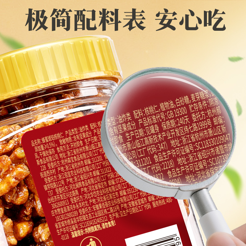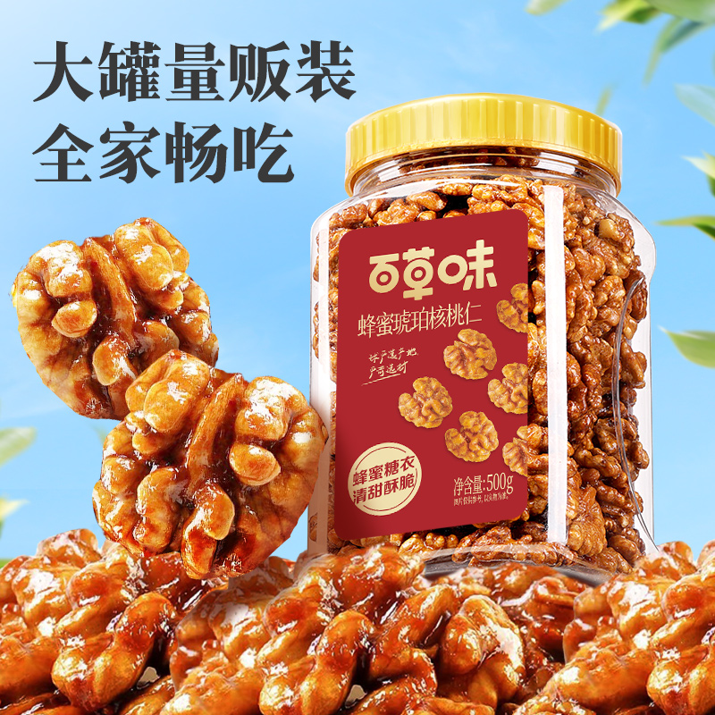 百草味蜂蜜琥珀核桃仁500g罐装即食熟核桃仁坚果干果休闲零食送礼