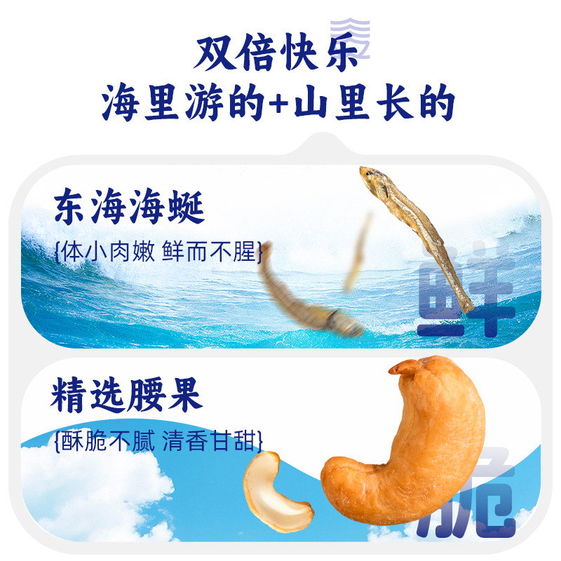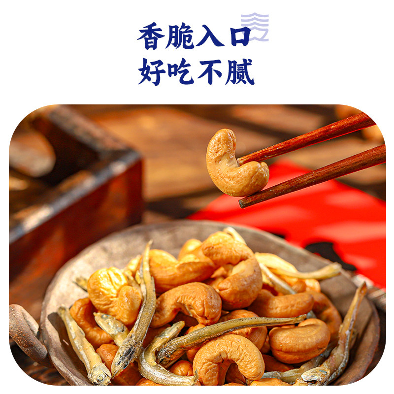 三关六码头宁波特产海蜒腰果海味小鱼坚果零食果仁炒货下酒菜即食