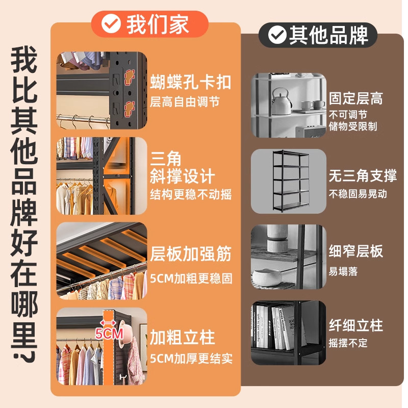 钢制置物架开放式家用货架挂衣架儿童衣帽架卧室落地衣柜简易收纳