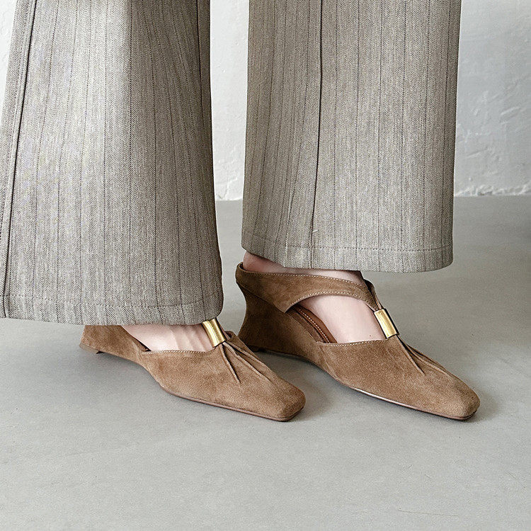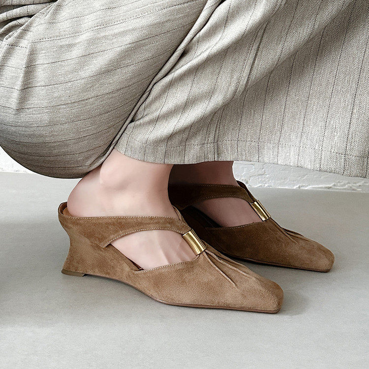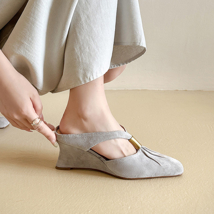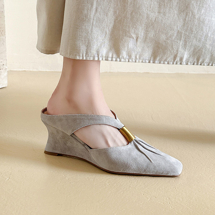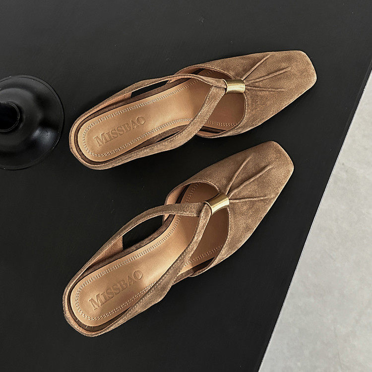 诺诺包头拖粗跟TPR(牛筋)胶粘工艺头层猪皮其他拖鞋