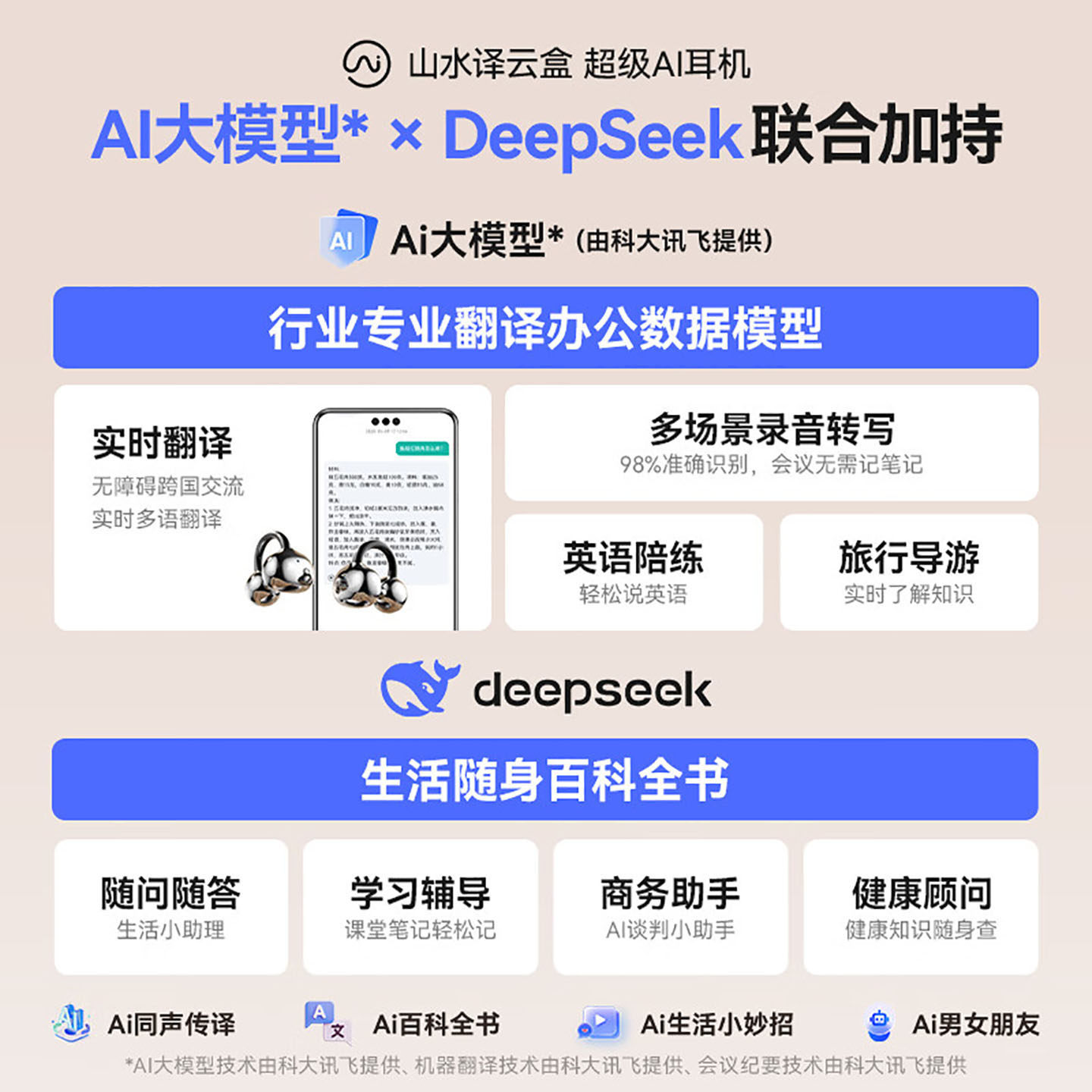 Sansui/山水 W105蓝牙耳机耳夹无线气骨传导AI 翻译耳机运动新款