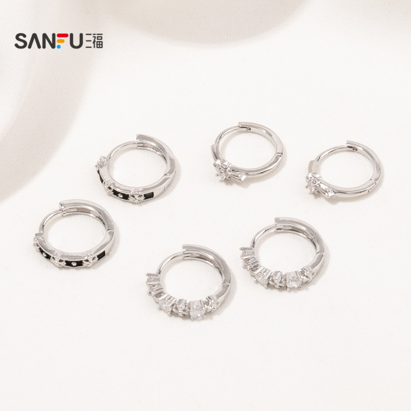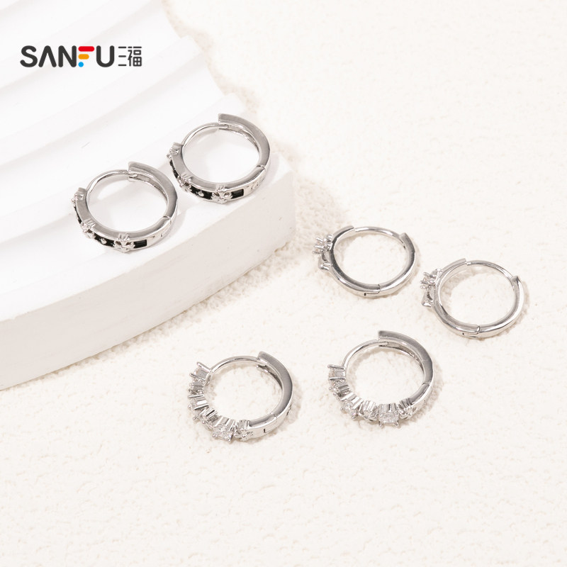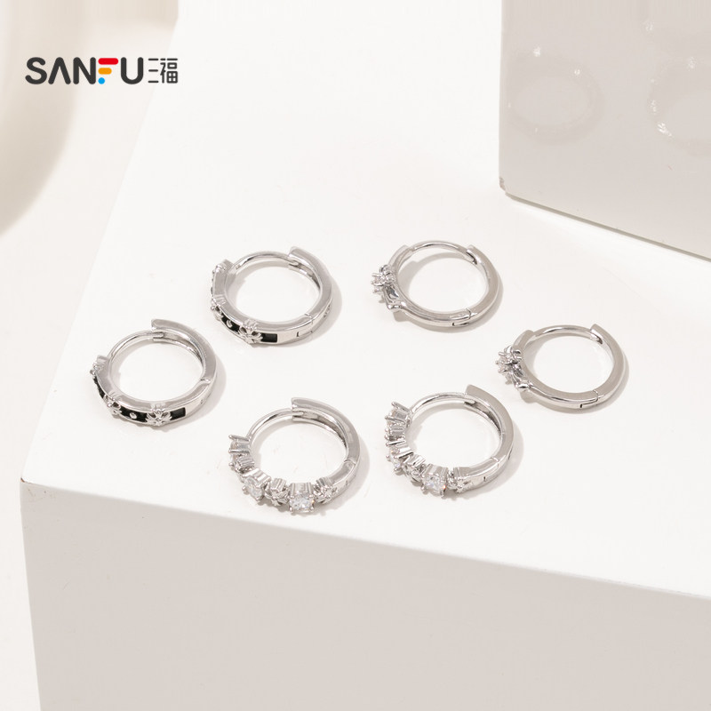 三福休闲男士中性风个性套装耳环一组三对 时尚首饰配饰838295