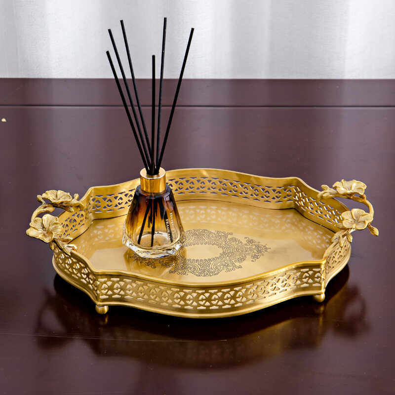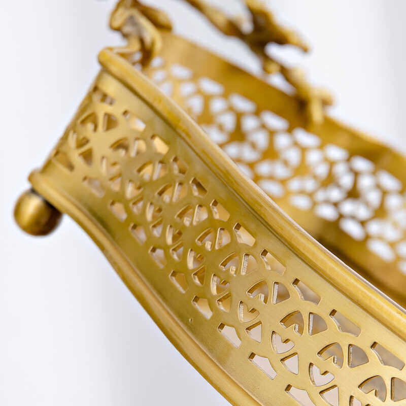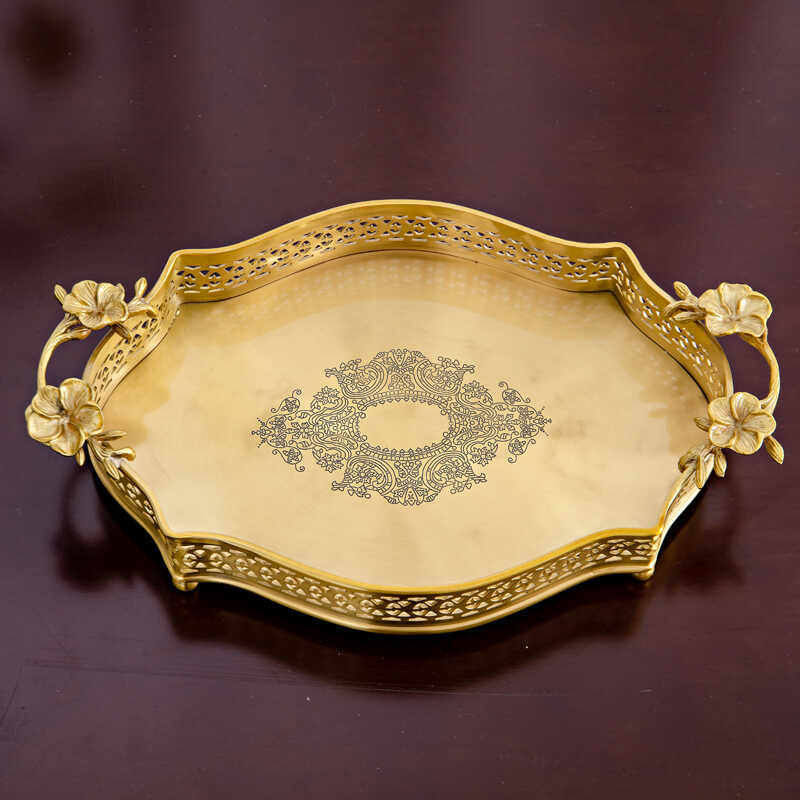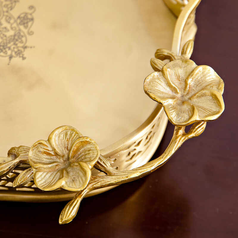 黄铜美式椭圆铜果盘收纳盘家居软装样板房家用工艺品摆件果篓