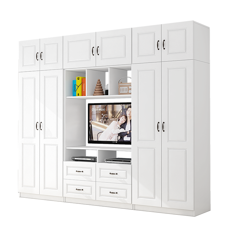 全屋定制衣柜电视柜组合墙卧室整体组合实木电视柜收纳储物柜一体