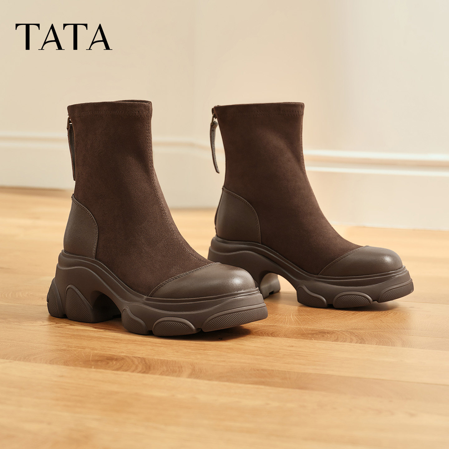 TATA他她喵爪靴2025冬袜靴瘦瘦短靴女弹力靴新款休闲靴子CEG05DZ5