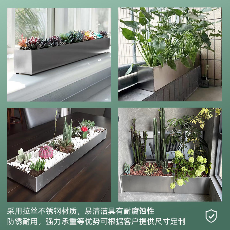 不锈钢花箱阳台长条花槽多肉花盆长方形户外盆栽种植盆托盘子定制