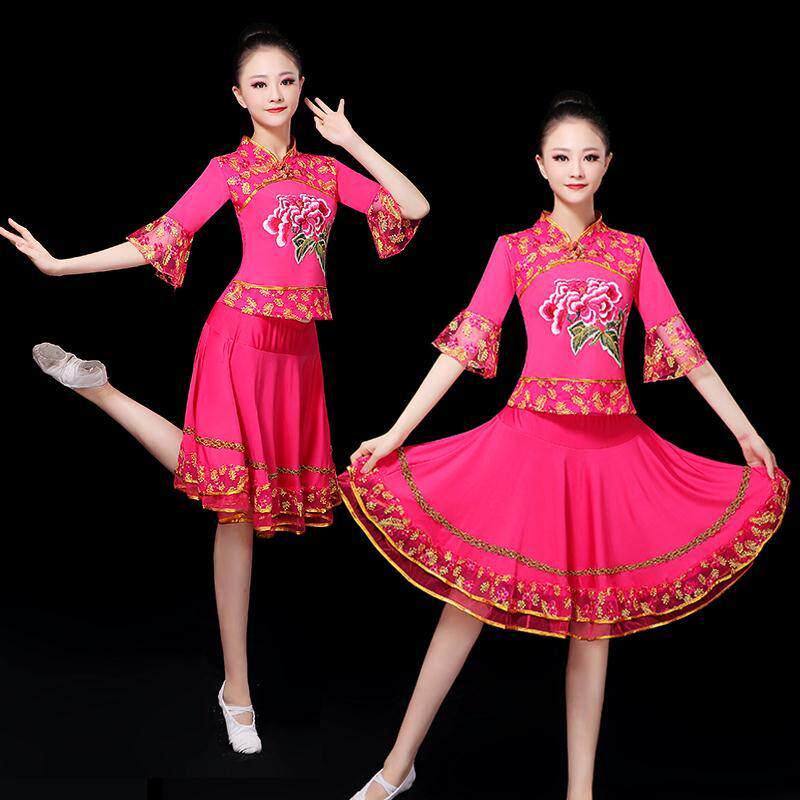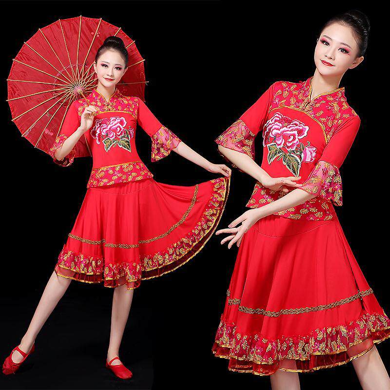 广场舞服装女春夏古典舞蹈演出服短裙民族风伞舞跳舞衣服新款套装