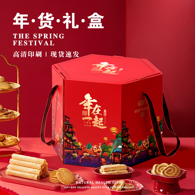 年货包装盒礼品盒空盒子春节新年高档土特产腊味坚果零食纸箱定制