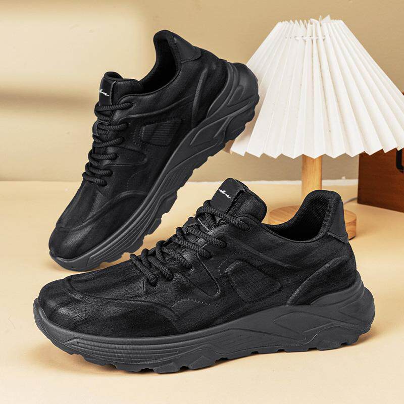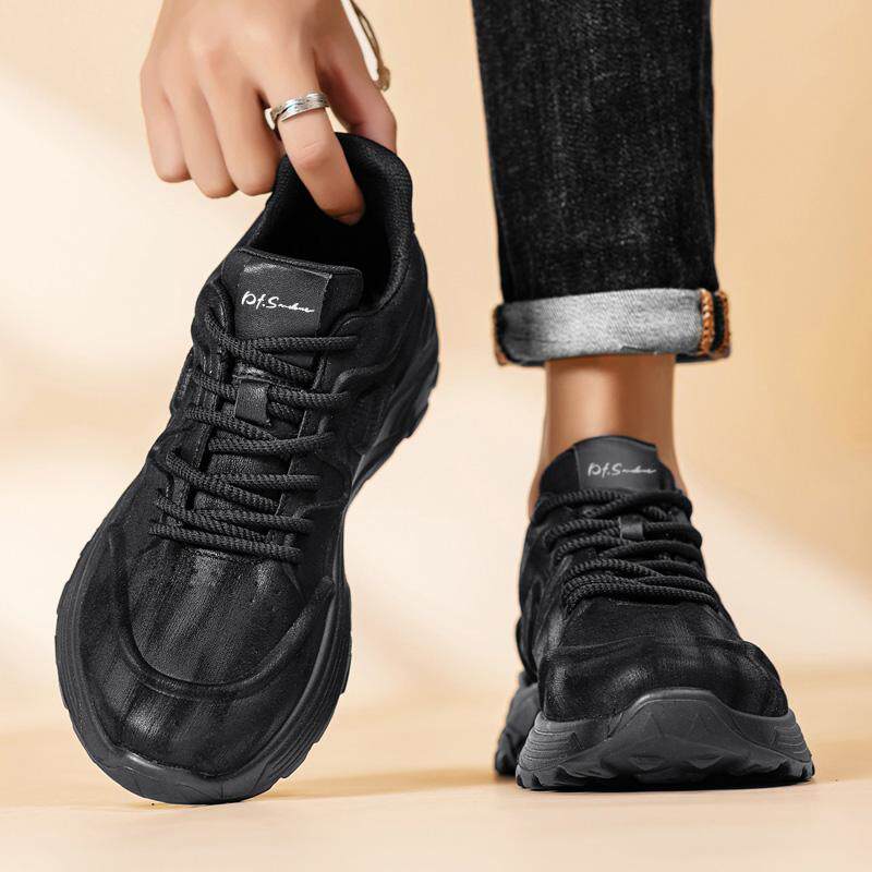 圣得西复古运动休闲鞋男士2026春季款橡胶底防滑纯色系带流行男鞋