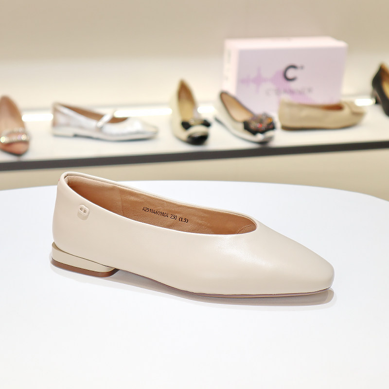 特价 千百度2026复古简约低跟牛皮浅口单鞋A25184609A04A05A15