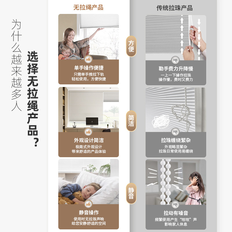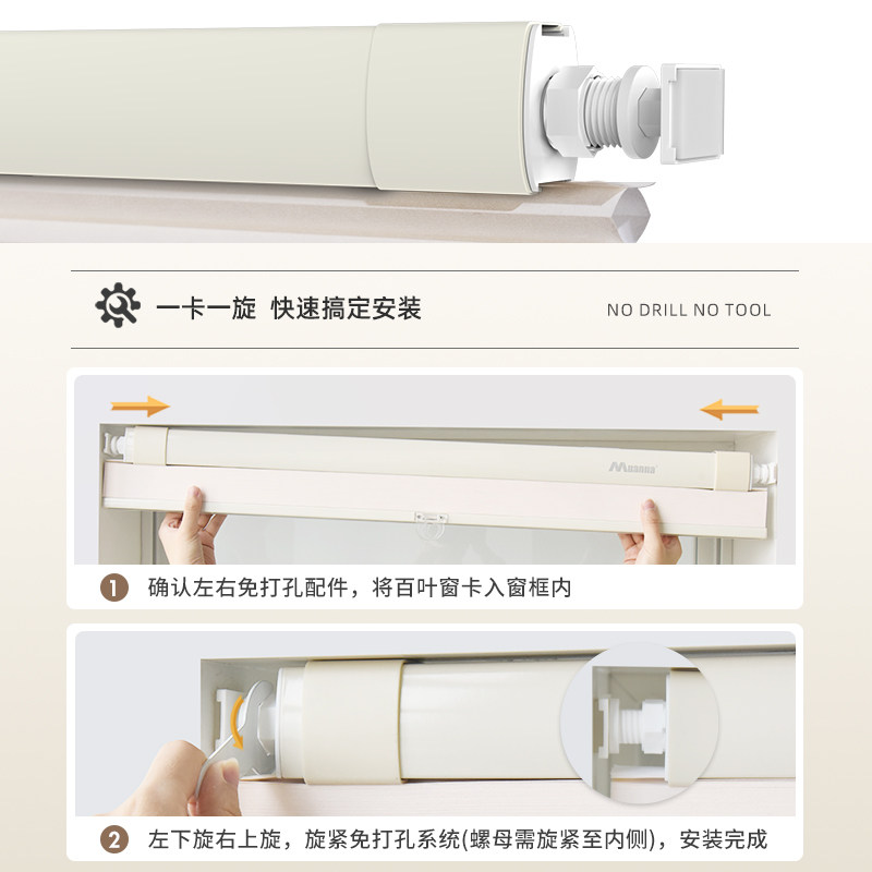 慕安娜免打孔蜂巢帘窗帘无绳推拉卫生间厨房防水蜂窝帘遮光遮阳
