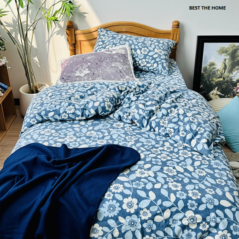 冬季款 日本订单 全棉印花绒布床上用品 枕套被套床单床笠四件套