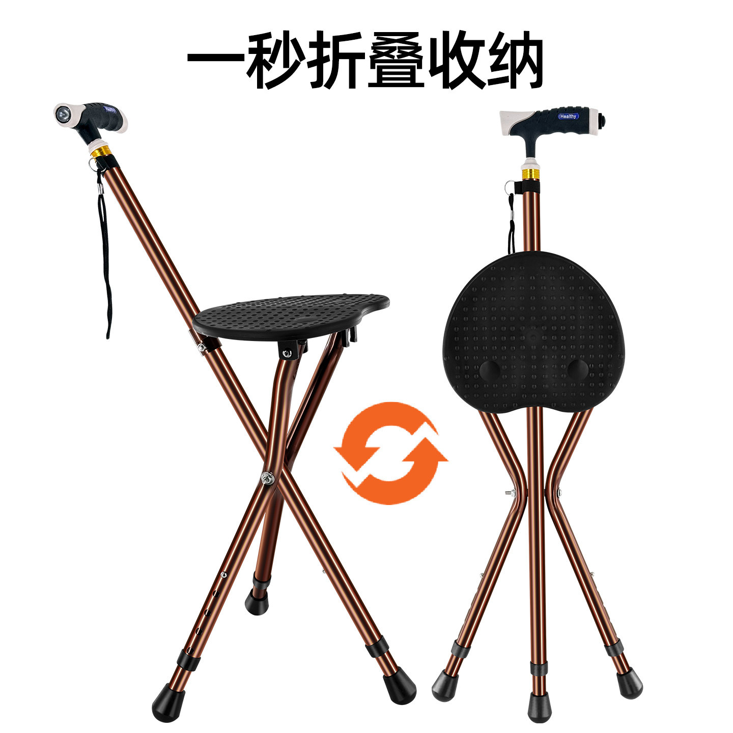老年人折叠三脚拐杖凳子手杖铝合金三角手杖凳中老年拐杖凳可调节